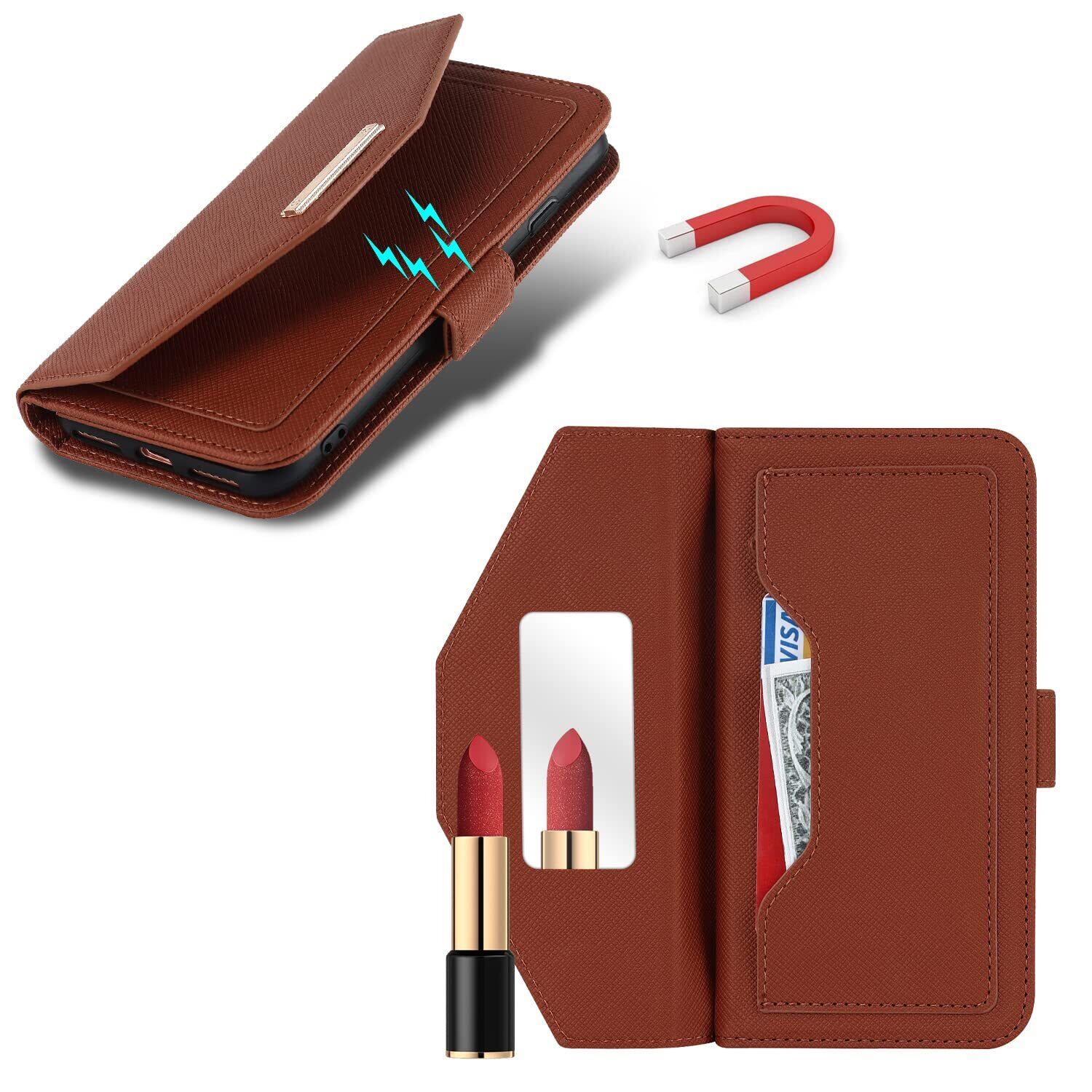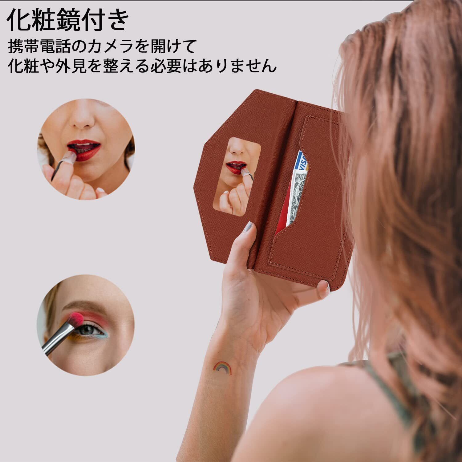 【高級皮革】高品質のPUと柔軟なTPUシェルを組み合わせて、スタイリッシュな外観、快適で滑らかなライン、優れた放熱性と耐衝撃性、優れた耐傷性と防塵性能を備えています. 変形しにくく、取り外しも簡単なので、スマホ自体を傷つける心配もありません。※注意:化粧鏡の素材は柔らかい。