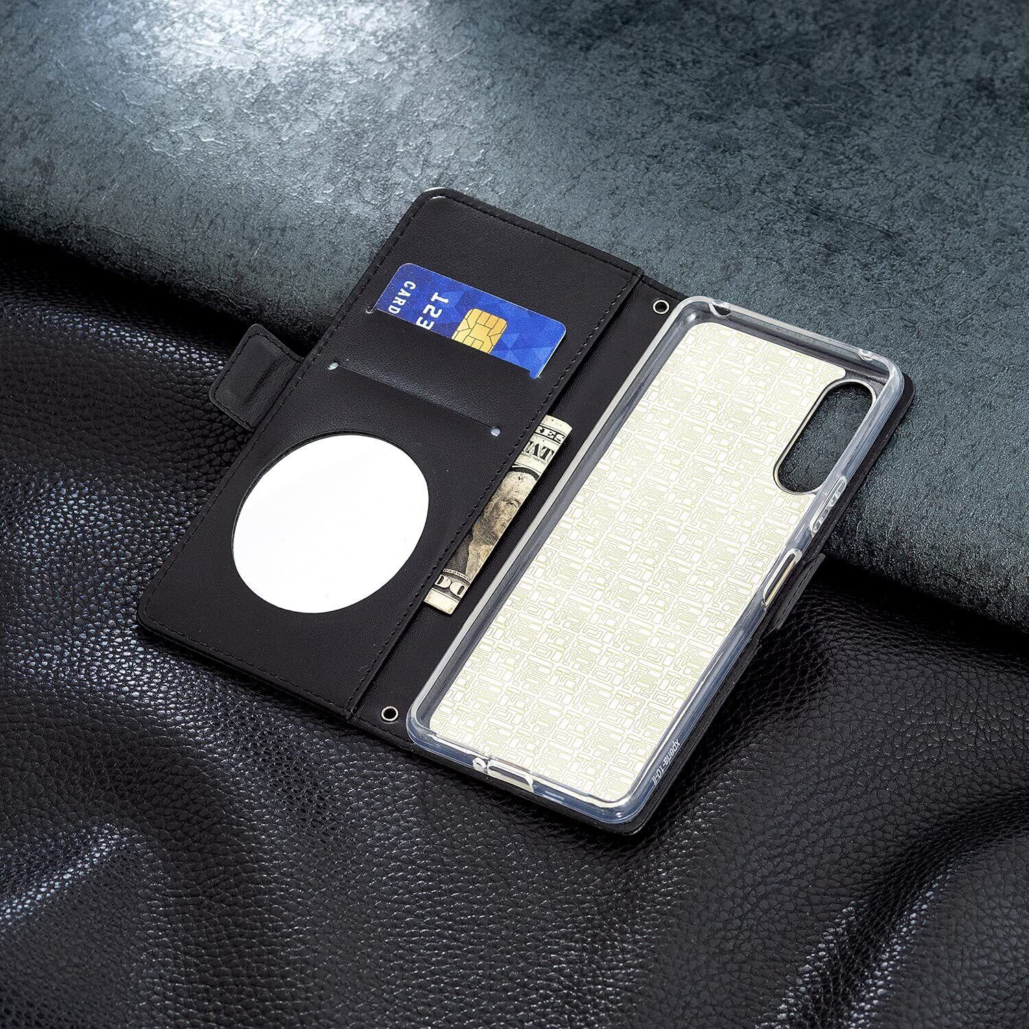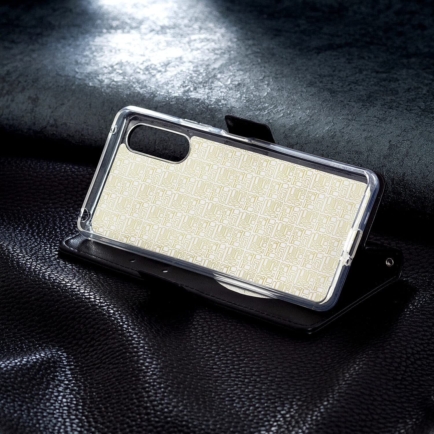 Xperia 10 II ケース SO-41A / SOV43 専用 ケース カバー エクスぺリア 10 II SOV43 SO-41A カバー手帳型ケース かわいい 型押し花柄 (7色選べる)ストラップ付き マグネット式磁気 本革なカバー 全面保護 スタンド機能 耐汚れ 耐衝撃 カード収納 (Xperia 10 II , C5-ブラック 黒)