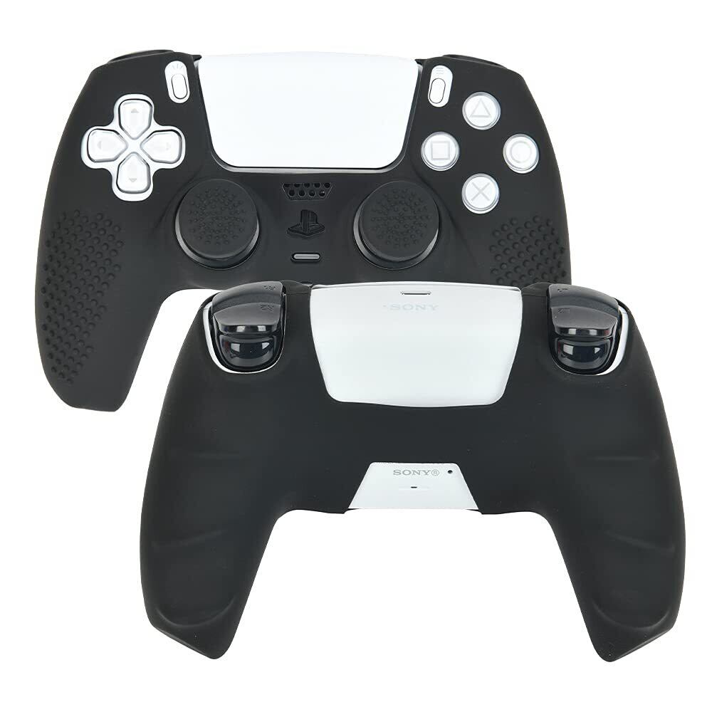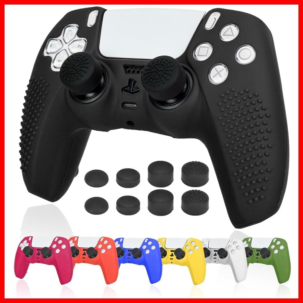 Ltenic ps5 コントローラー カバー シリコン素材 ps5 カバー コントローラー 滑り止め 簡単装着 超軽量 耐衝撃 傷つけ防止 保護ケース-ブラック色(スティックキャップ 8個付)