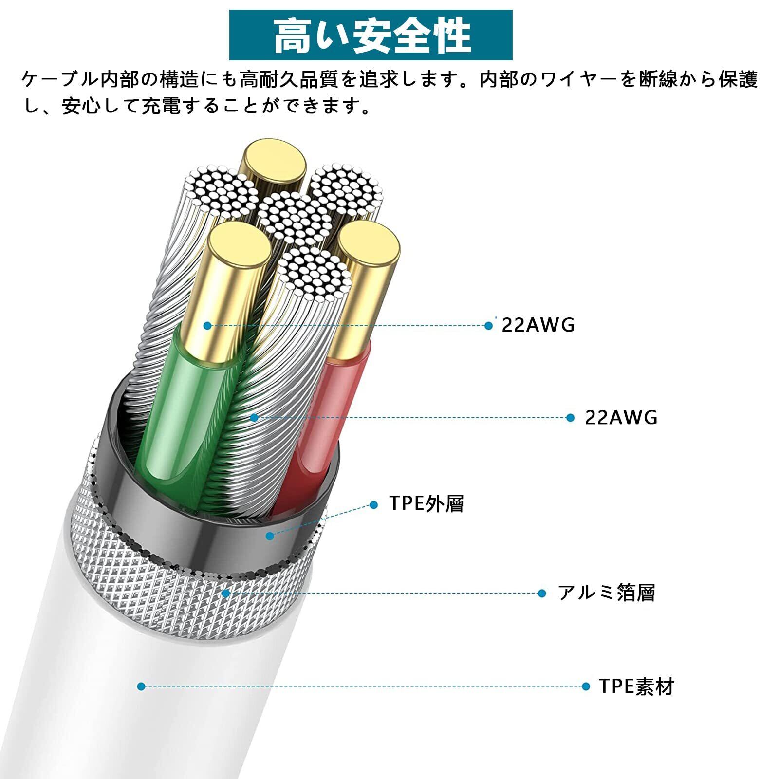 【耐久性が高い】TPE素材を採用しており、断線しにくく、一般的なケーブルより10倍以上の耐久性をもち、10000回以上の厳しい折り曲げテストもクリアしました。柔軟性を備えだけでなく折れ曲がりにも強く、通常使用では折れる心配はありません。