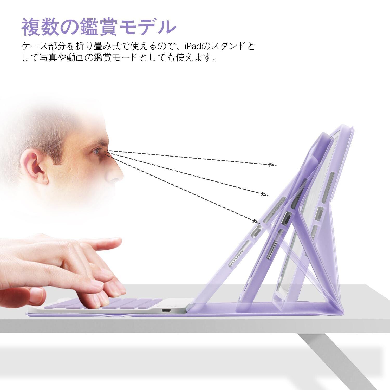 【複数の鑑賞モデル・品質保証】iPad 10.2対応キーボードケースは滑り止め設計があり、お好みな角度で映画などをお楽しむことがいただけます。本商品は1年安心品質保証がついております、遠慮なくお試してください。