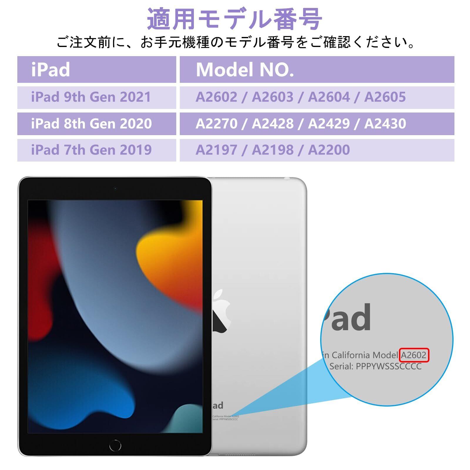 【カバー対応機種ご注意ください】本iPadキーボード付きケースはiPad第九世代(2021発売)第八世代(2020発売)第七世代(2019発売)iPad 10.2インチに専用して設計されました。専用だからこそipad全面的に精度よくフィットします。対応モデル番号はA2602、A2603、A2604、A2605、AA2270、A2428、A2429、A2430、A2197、A2198、A2200です。ご注文の際、お使いのiPadモデルをご確認ください。