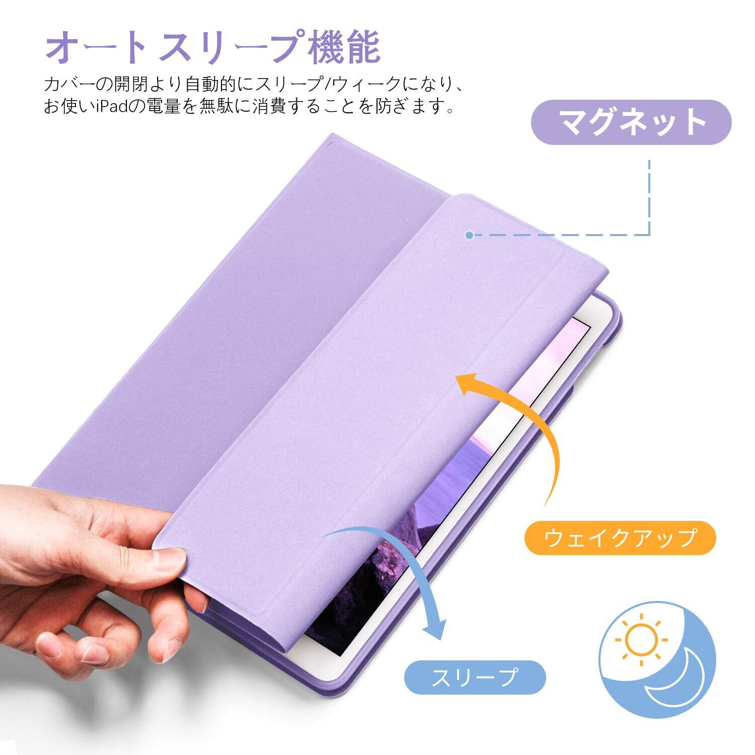【オートスリープ機能付き・高性能パッテリー搭載】iPad第九世代キーボードカバーはオートスリープ機能付き、ケースの開閉より自動的にスリープ/ウィークになり、お使いiPadの電量を無駄に消費することを防ぎます。一度フル2時間充電したら、日常程度(1日2時間使用の場合)で連続20日間の継続使用と30日間の待受が可能です。