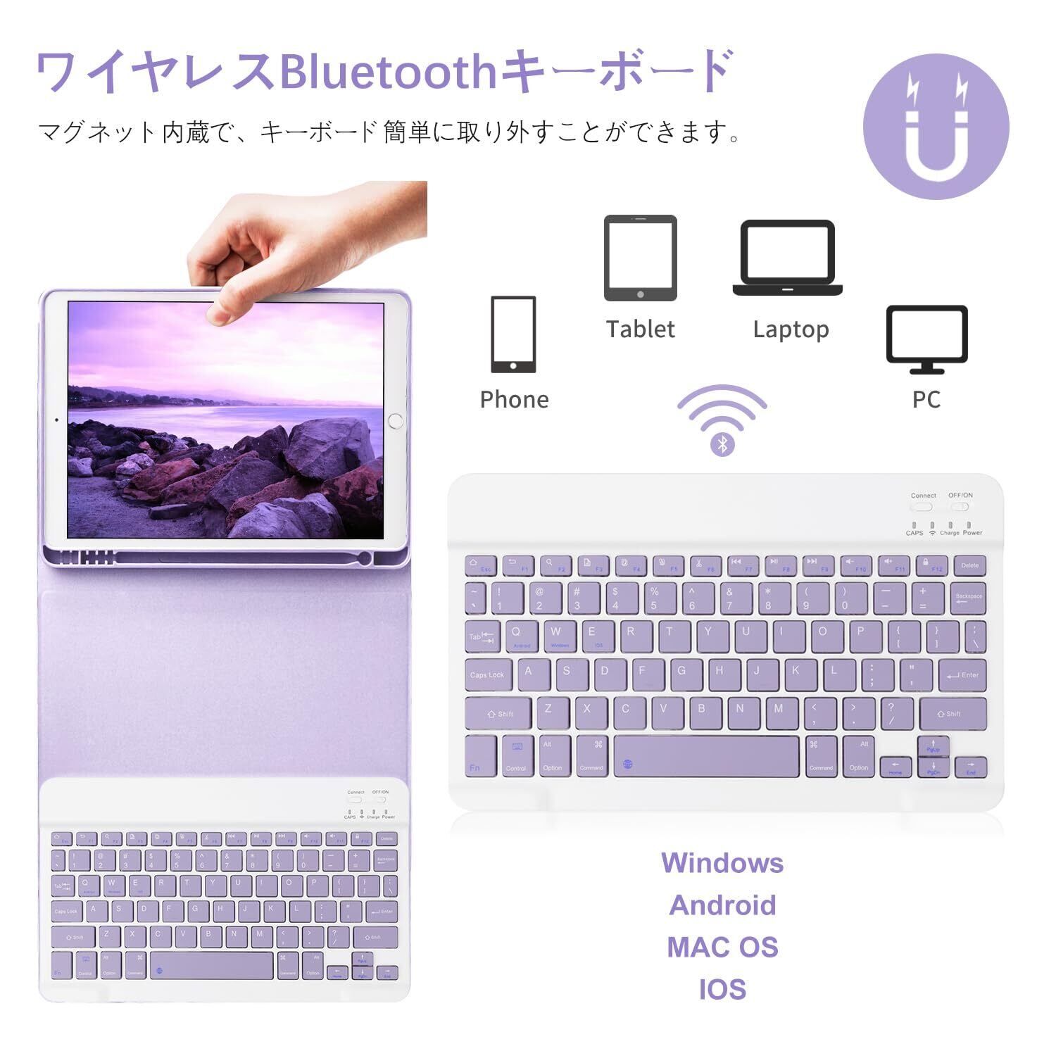 iPad 10.2 キーボード ケース GOOJODOQ iPad 第9世代/第8世代/第7世代適用 Bluetooth キーボード付きカバー iPad 9/8/7通用ケース 脱着式 ペンホルダー付き スタンド機能 オートスリープ機能 多角度調整 傷つけ防止 耐久性 (パープル)