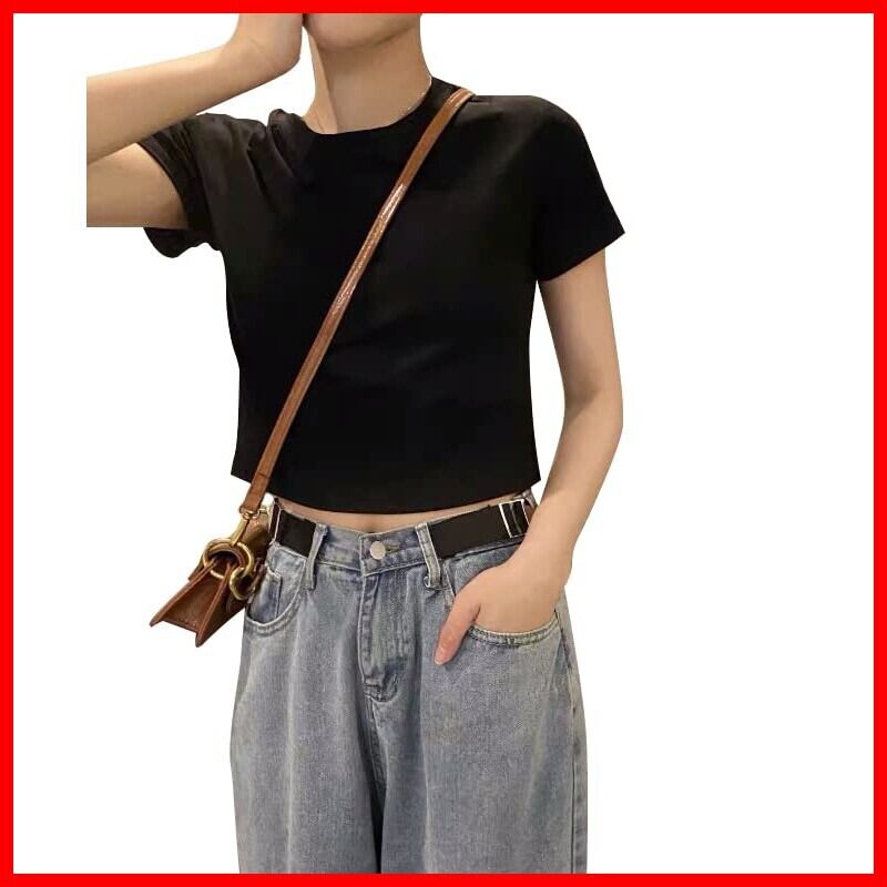 【トレンドスタイル 】これからの季節にぴったりのちびTシンプルなTシャツですが、チラッと見せるウエスト部分がカジュアルすぎずセクシーさも感じさせる
