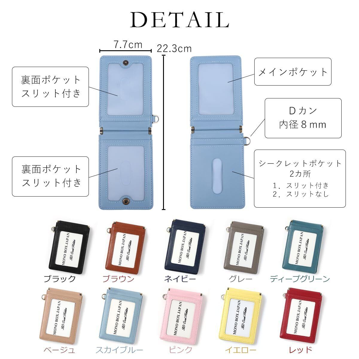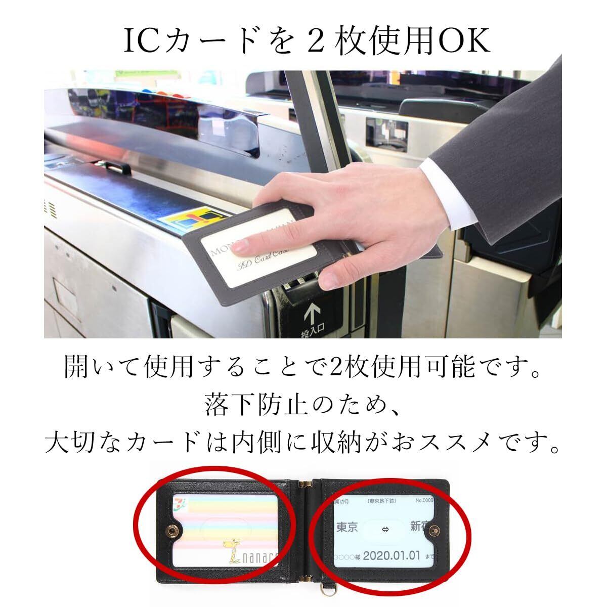 パタっと開いて使えばICカードを2枚できます。フック付きで首下げでもご使用頂けます。