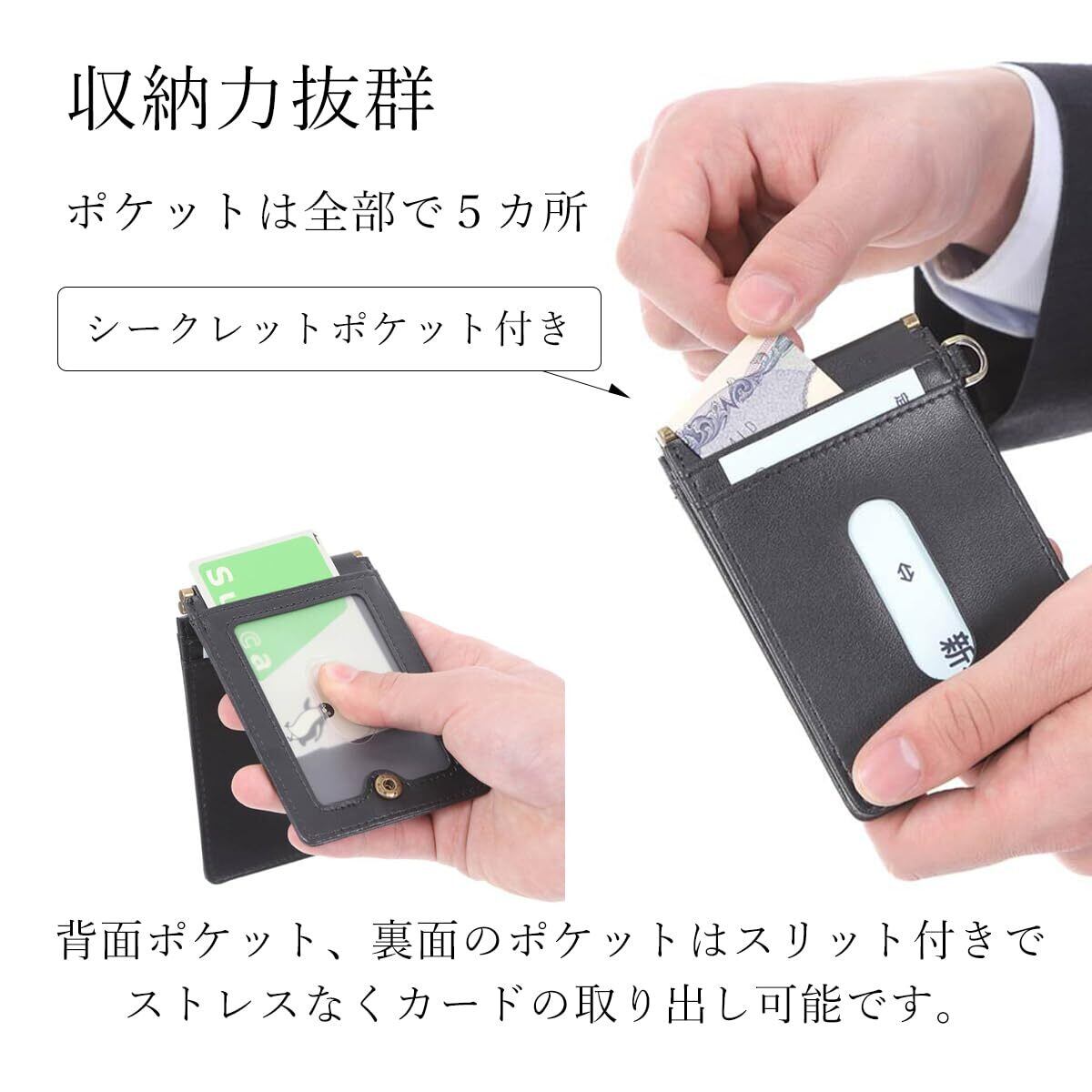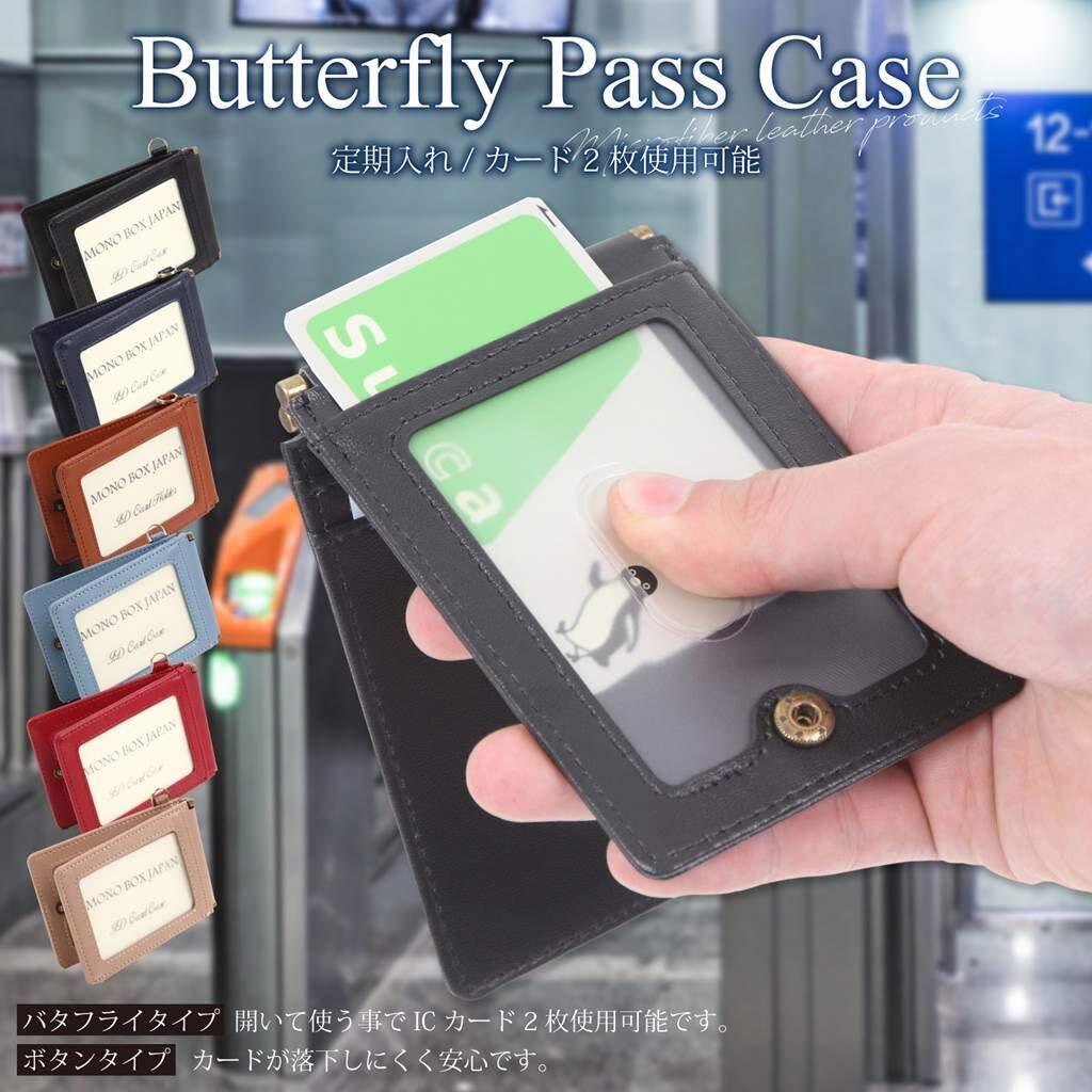 パスケース 定期入れ ICカード2枚使用可能バタフライタイプ 5ポケット 首下げOK pc-mono1 black ブラック
