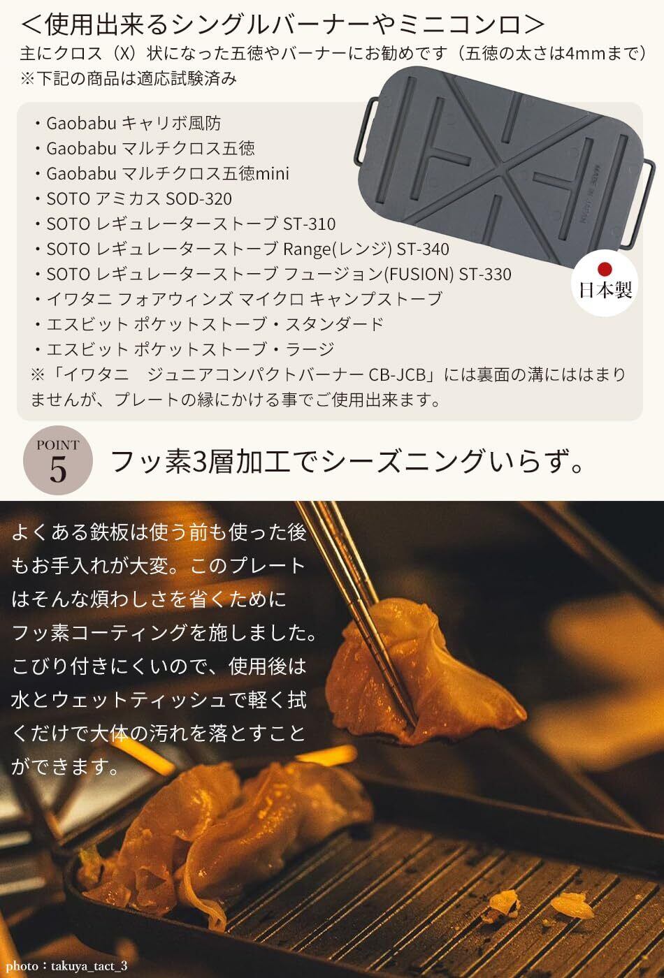 ※「イワタニ ジュニアコンパクトバーナー CB-JCB」には裏面の溝には嵌りません が、プレートの縁にかける事でご使用出来ます。