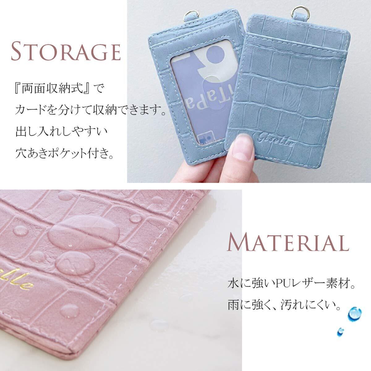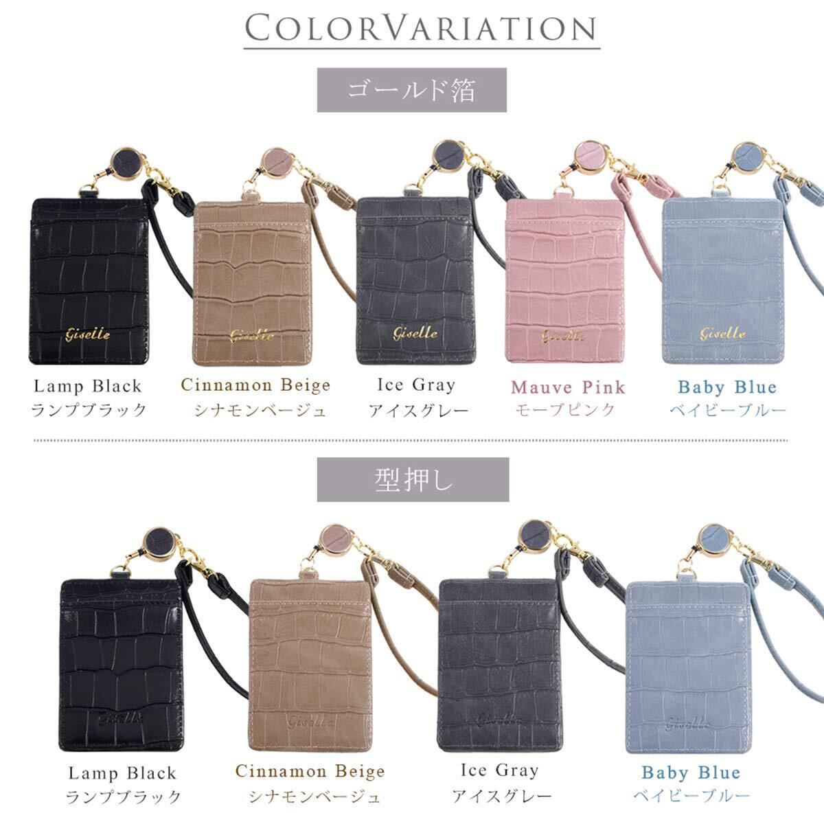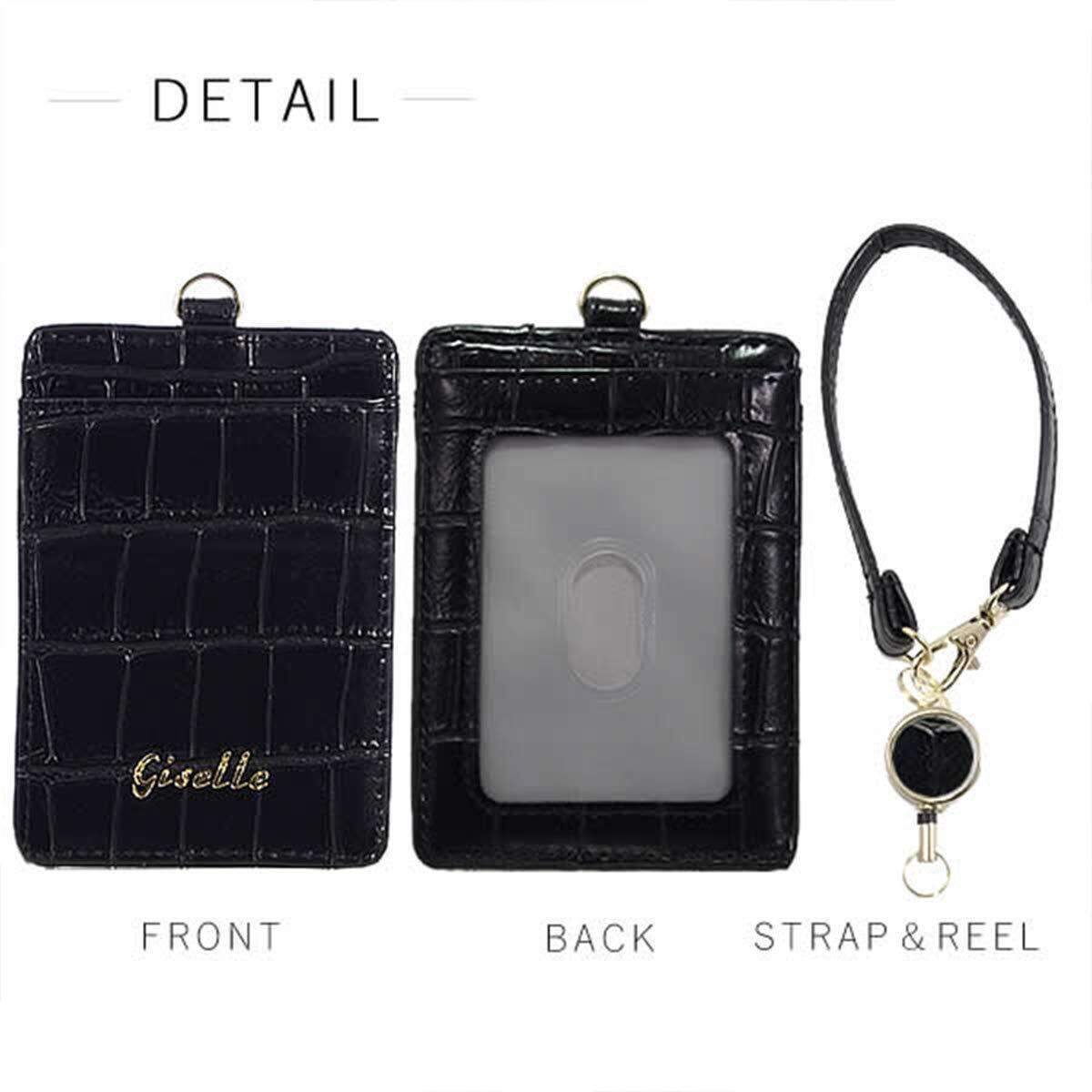 パスケース リール付き レディース 定期入れ メンズ idカードホルダー icカードケース 社員証 カードケース 両面 ストラップ付 通勤 通学 クロコ風型押し(Ice Gray/アイスグレー(型押し)