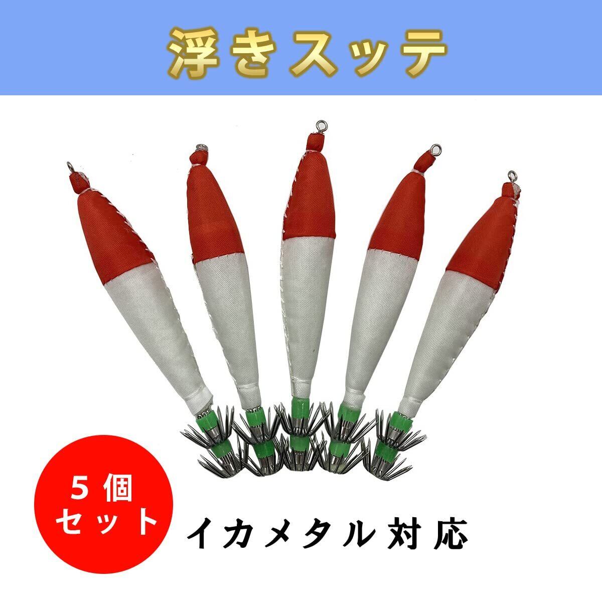 J-base 定番の浮きスッテ 4号 5本セット イカメタル イカ釣り 仕掛け 夜行 ケンサキ マイカ スルメイカ ヤリイカ (レッド)