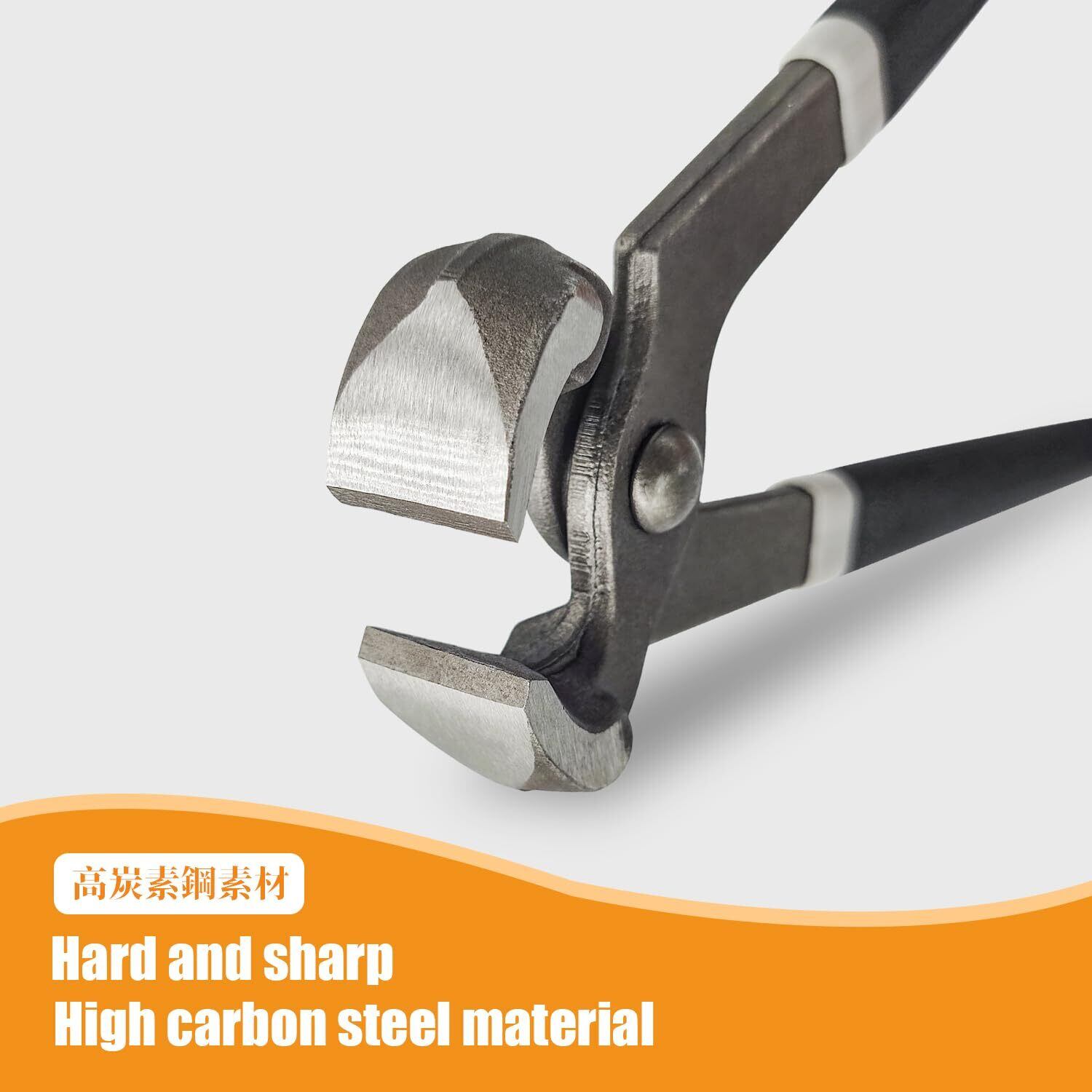 【細かい設計】この釘抜きニッパーは高炭素鋼製、硬化処理を施し、強くて耐久性のある先端を持って、鈍くなりません。