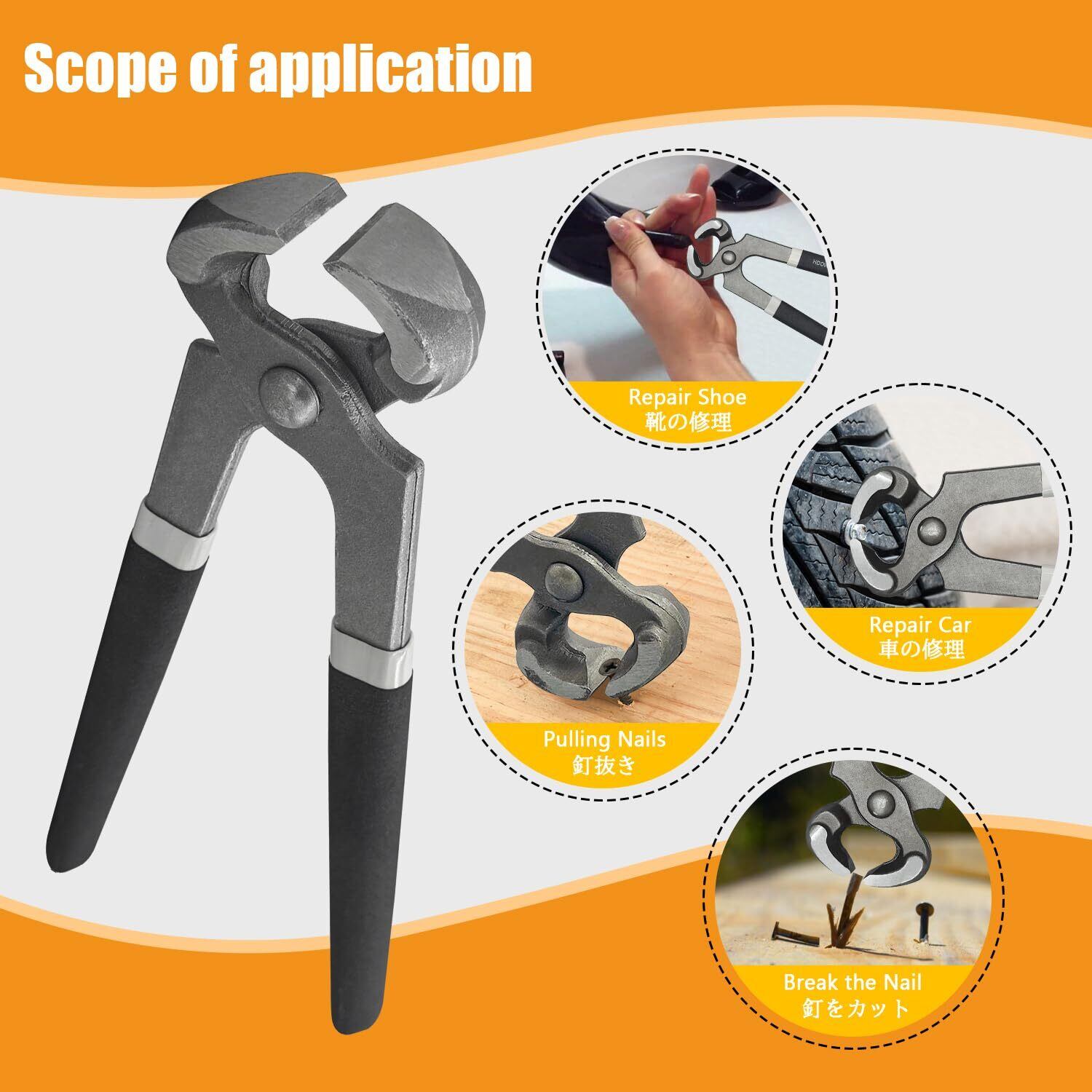【幅広い用途】釘抜き、釘のカット、ワイヤーカッター、建築工事、DIY工具など色々な場所で大活躍。