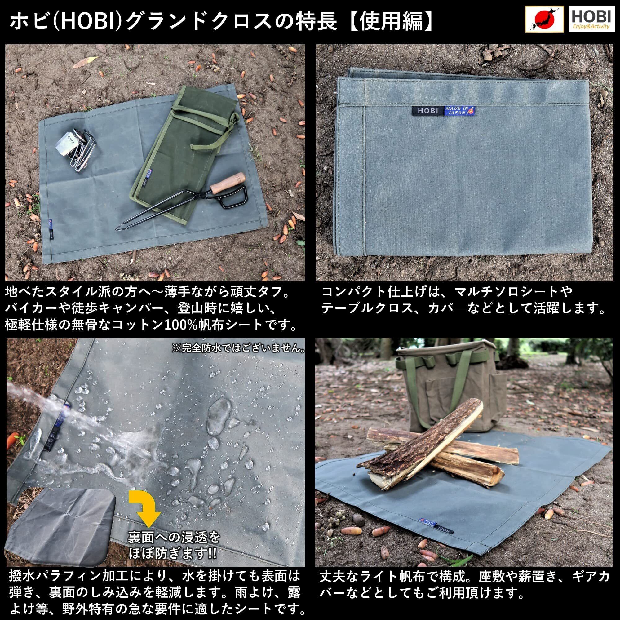 HOBI グランドクロス 70×50cmソロ グランドシート 極軽上質帆布 撥水パラフィン加工 軽量 マルチシート キャンプ ミニ マット 軍幕 ブラックオリーブ