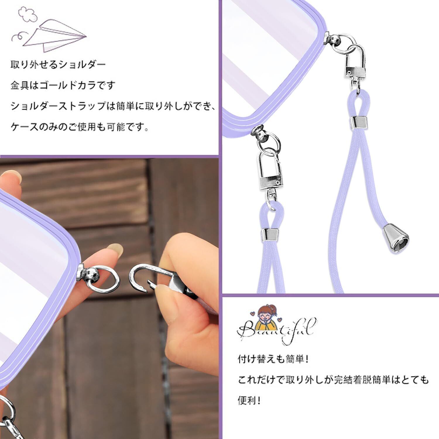 【使いやすさ・長さ調整可能】柔らかいナイロンストラップで首を快適に保ち、金属製のアジャスタブルエンドで、快適な長さに調整できます、手を自由に、ストラップの全長は1.3メートルです。ストラップを取り外して、電話ケースを単独で使用できます。