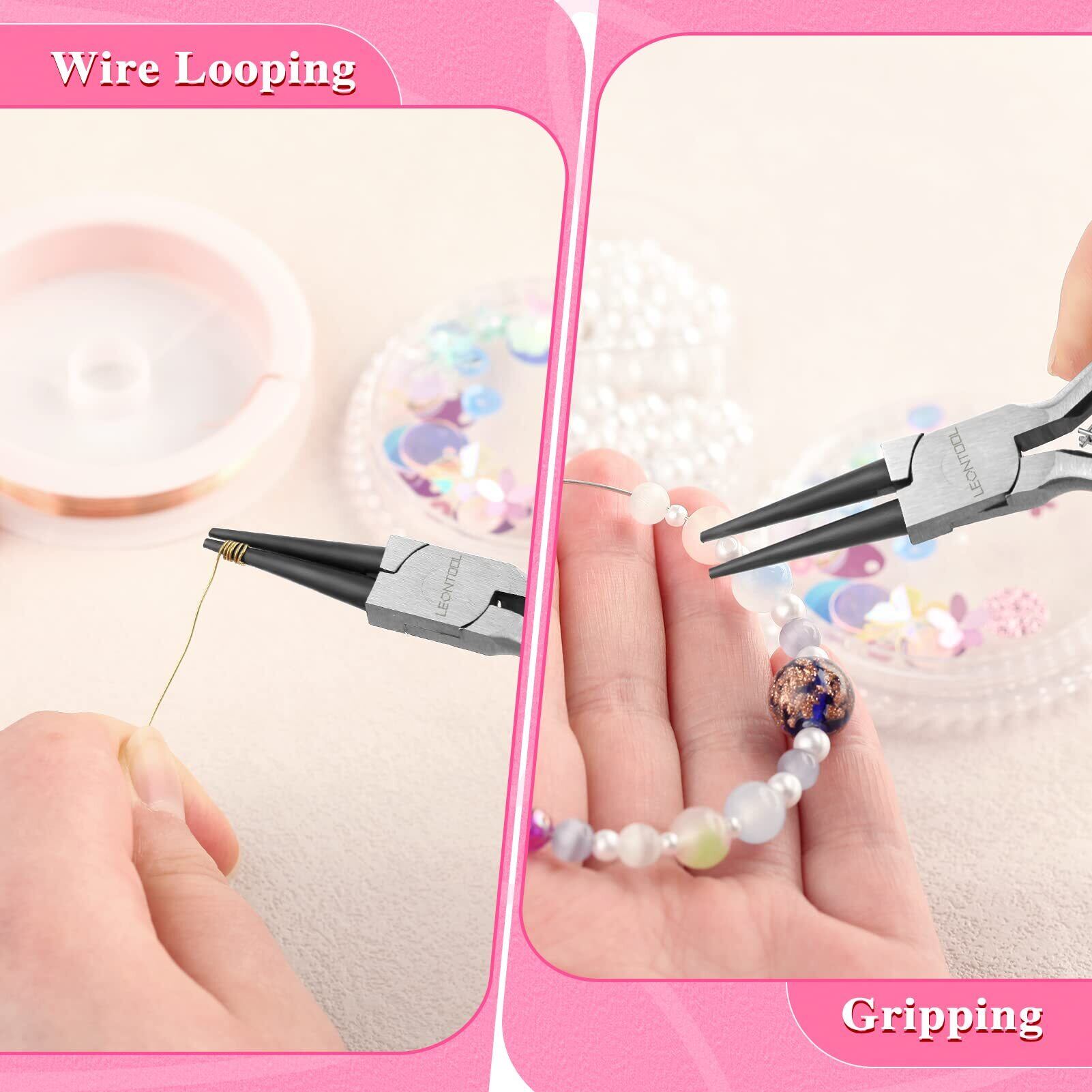 LEONTOOL 丸ペンチ 丸やっとこ アクセサリー用 工具 極細 先細タイプ 手芸 丸ヤットコ 細 先丸ペンチ ミニ丸口ペンチ ピン曲げペンチ 曲げる 掴む 丸める バネ付 軽量 小型 マイクロ ビーズ プロ ホビー ツール DIY アクセサリー作り 手作り ジュエリー製作 ハンドメイド 配線作業 用具 道具 初心者 サビにくい 女性用 女性サイズ