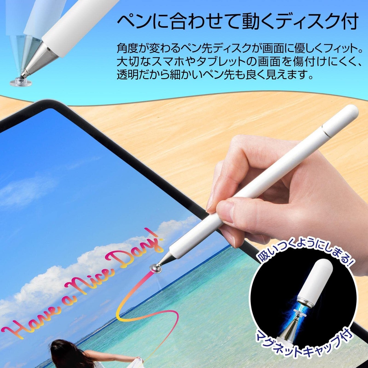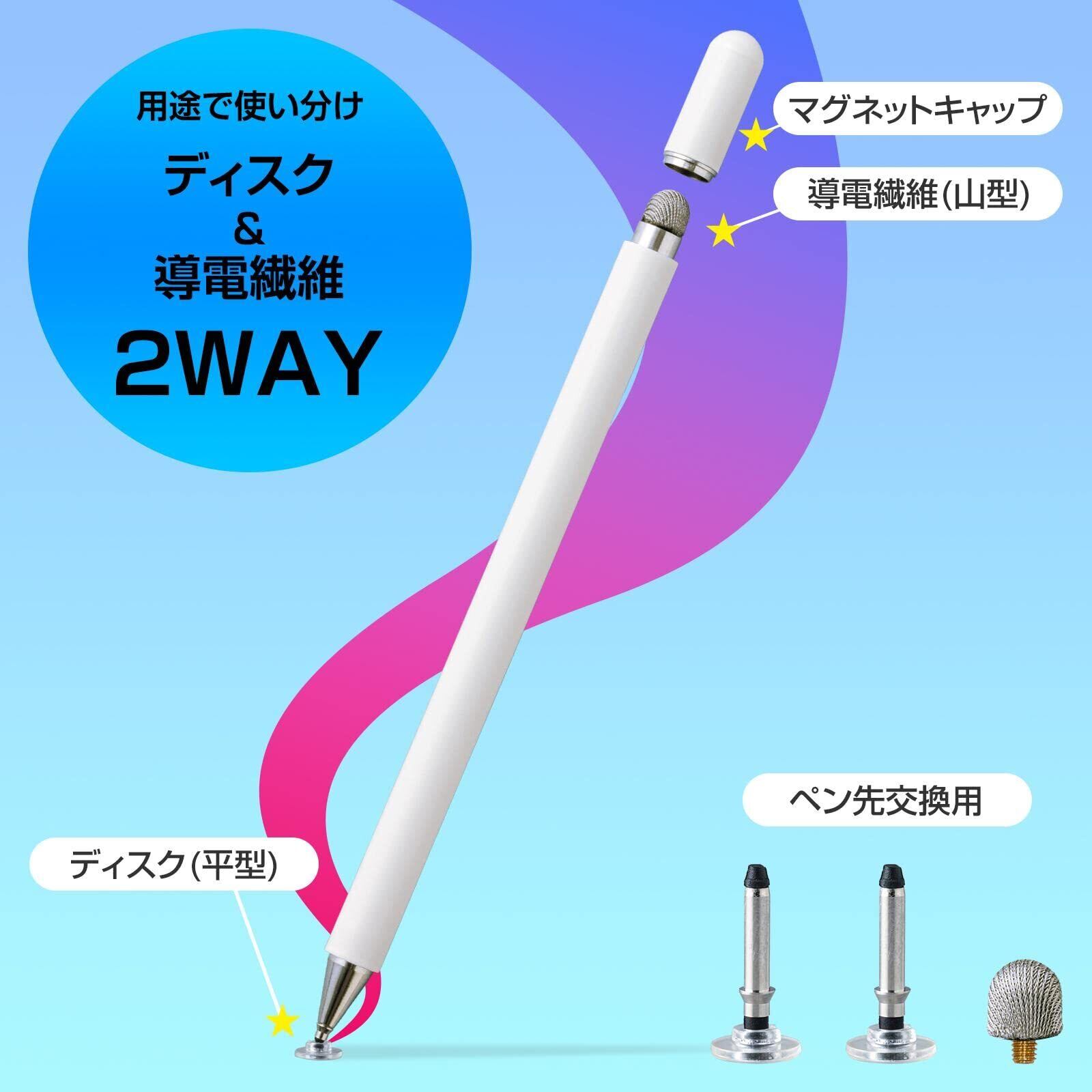 【付属品:交換用ヘッド ディスク型(平型)ペン/2個、導電繊維型(山型)ペン/1個】
