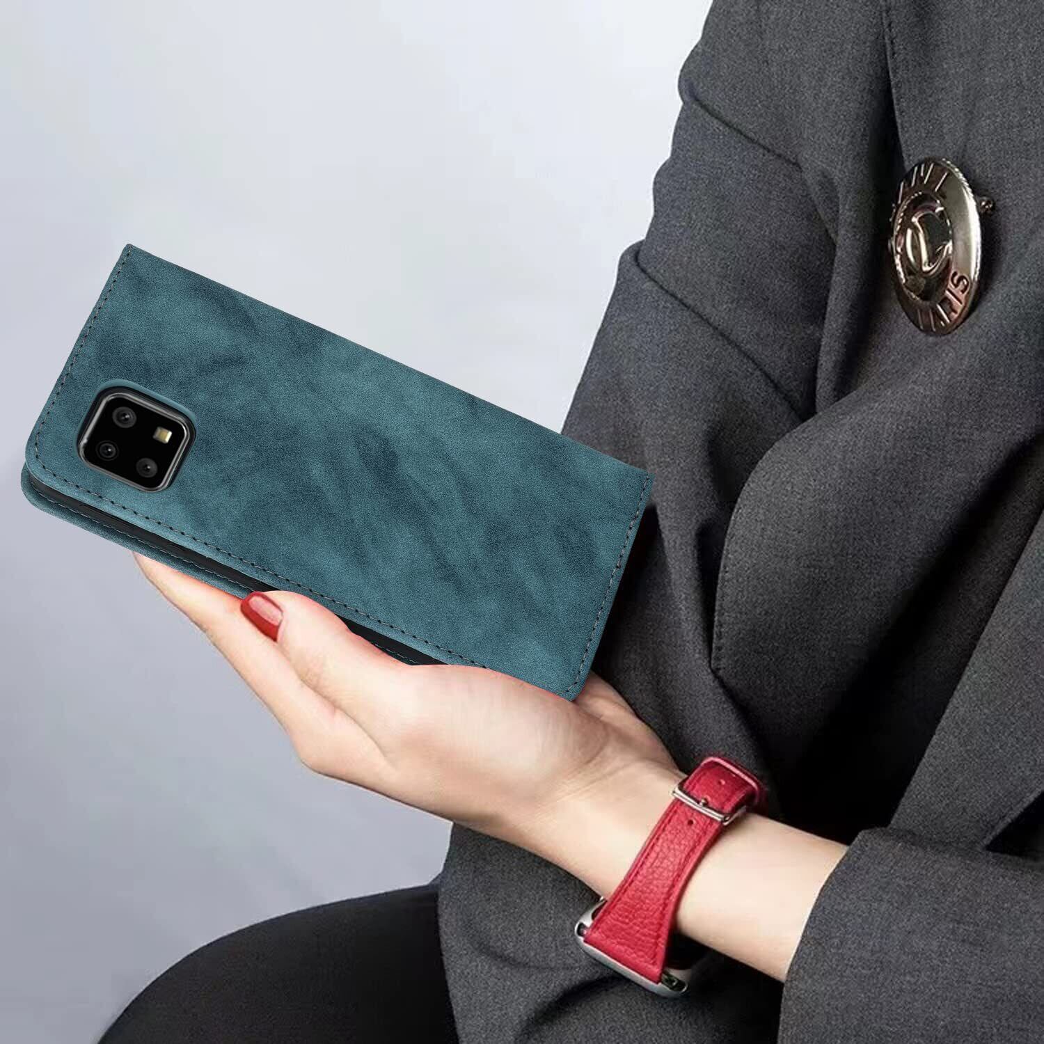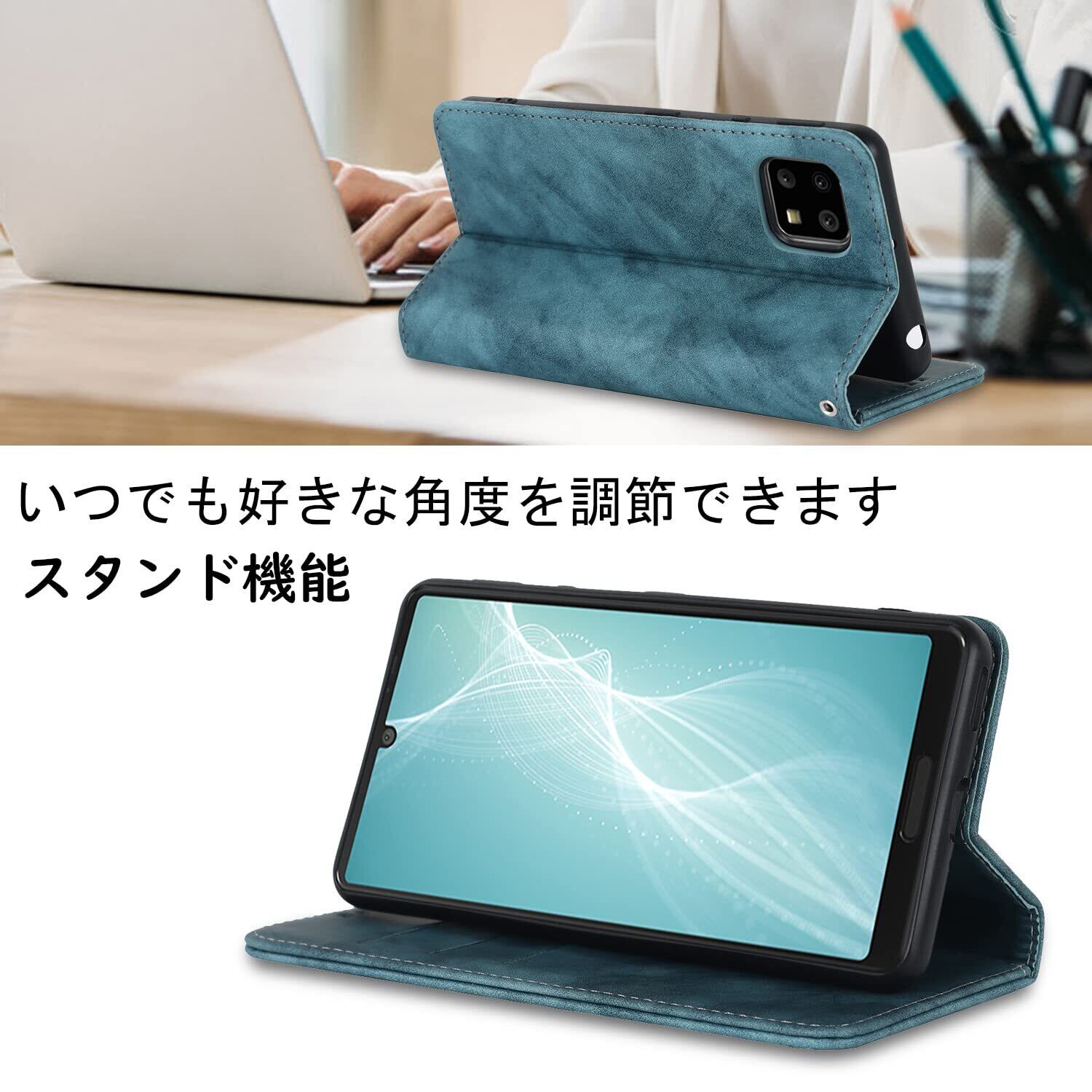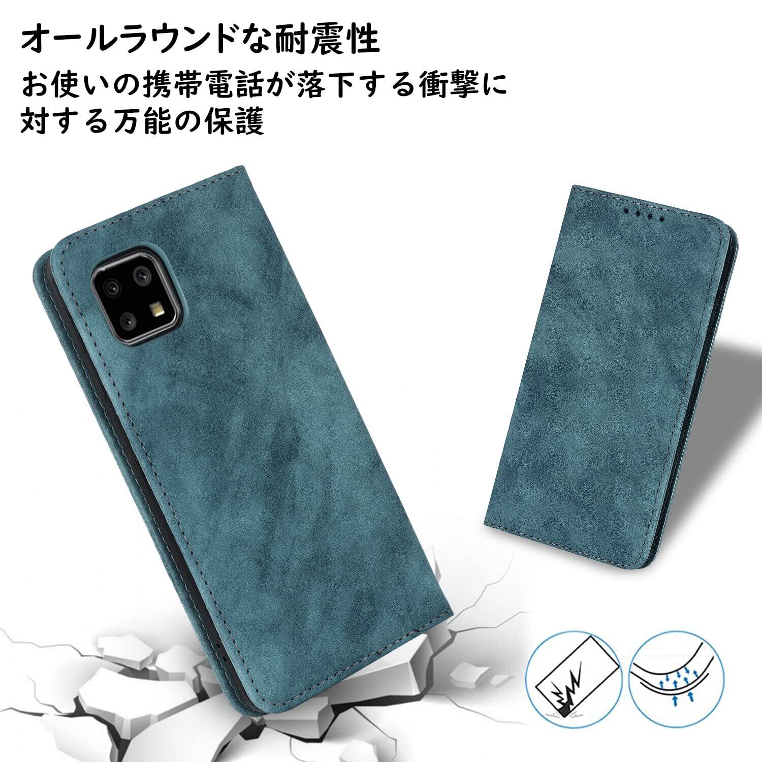 Havaya 対応 AQUOS Sense4 ケース aquos sense5g ケース sense4 lite スマホケース 手帳型 ストラップ SH53A sense4 basic 耐衝撃 docomo sh-41a SHG03 au シャープ SH-M15 SH-RM15 SH-M17 Sharp A003SH カバー SoftBank カード収納 スタンド機能 スエードの質感-ブルー