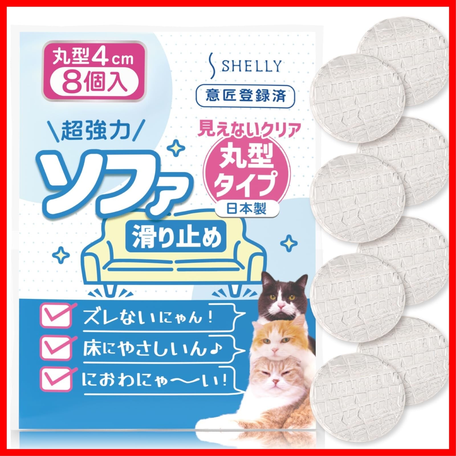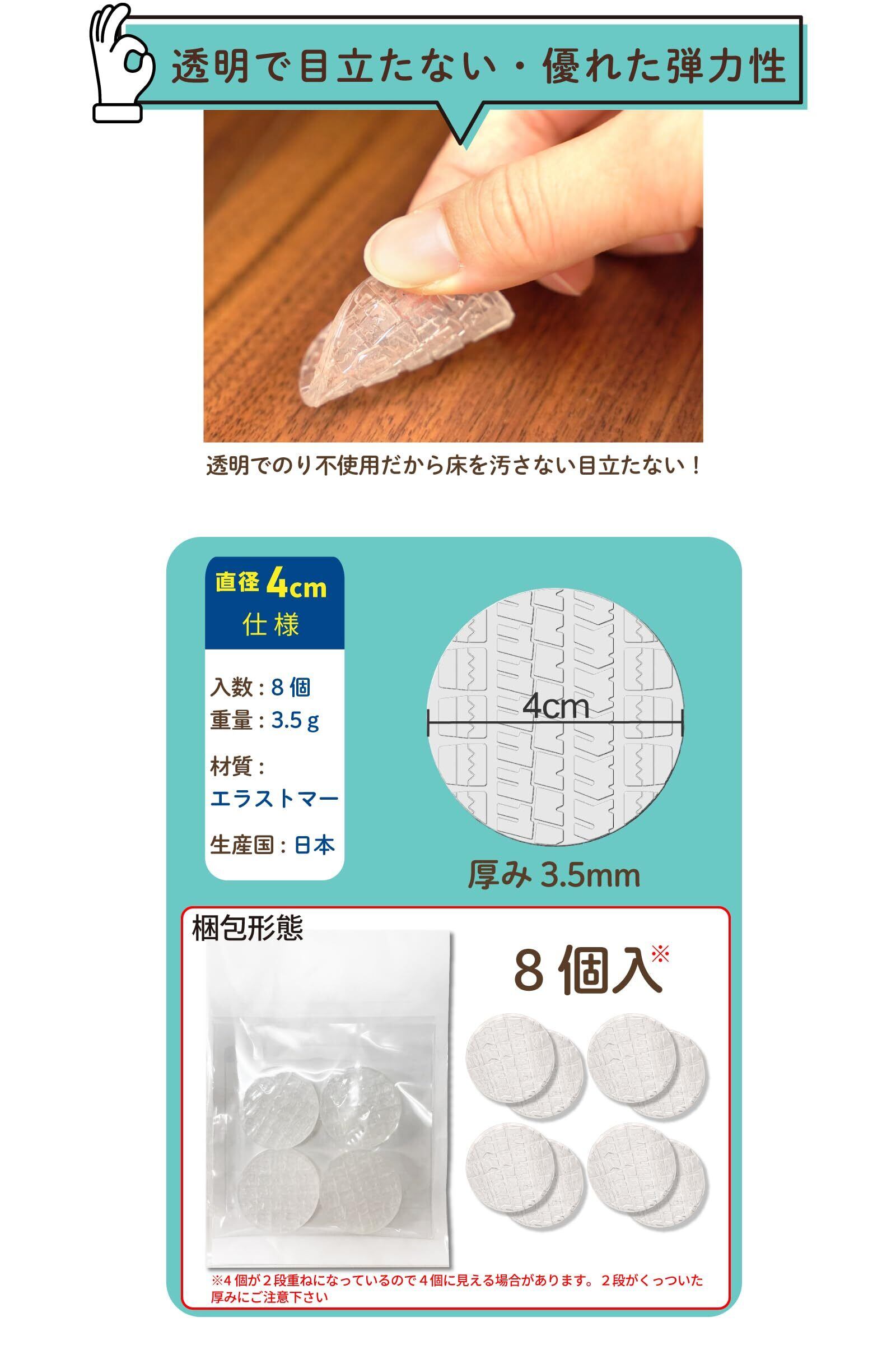 ソファ 滑り止め 見えない 超強力 ソファー 滑り止め 丸型 直径 4センチ クリア 8個 日本製 ソファ滑り止め ベッド滑り止め テーブル滑り止め ソファ 足 傷防止 ズレ防止 防音 床暖房 ソファ 滑り止め 最強 4cm シェリー Shelly