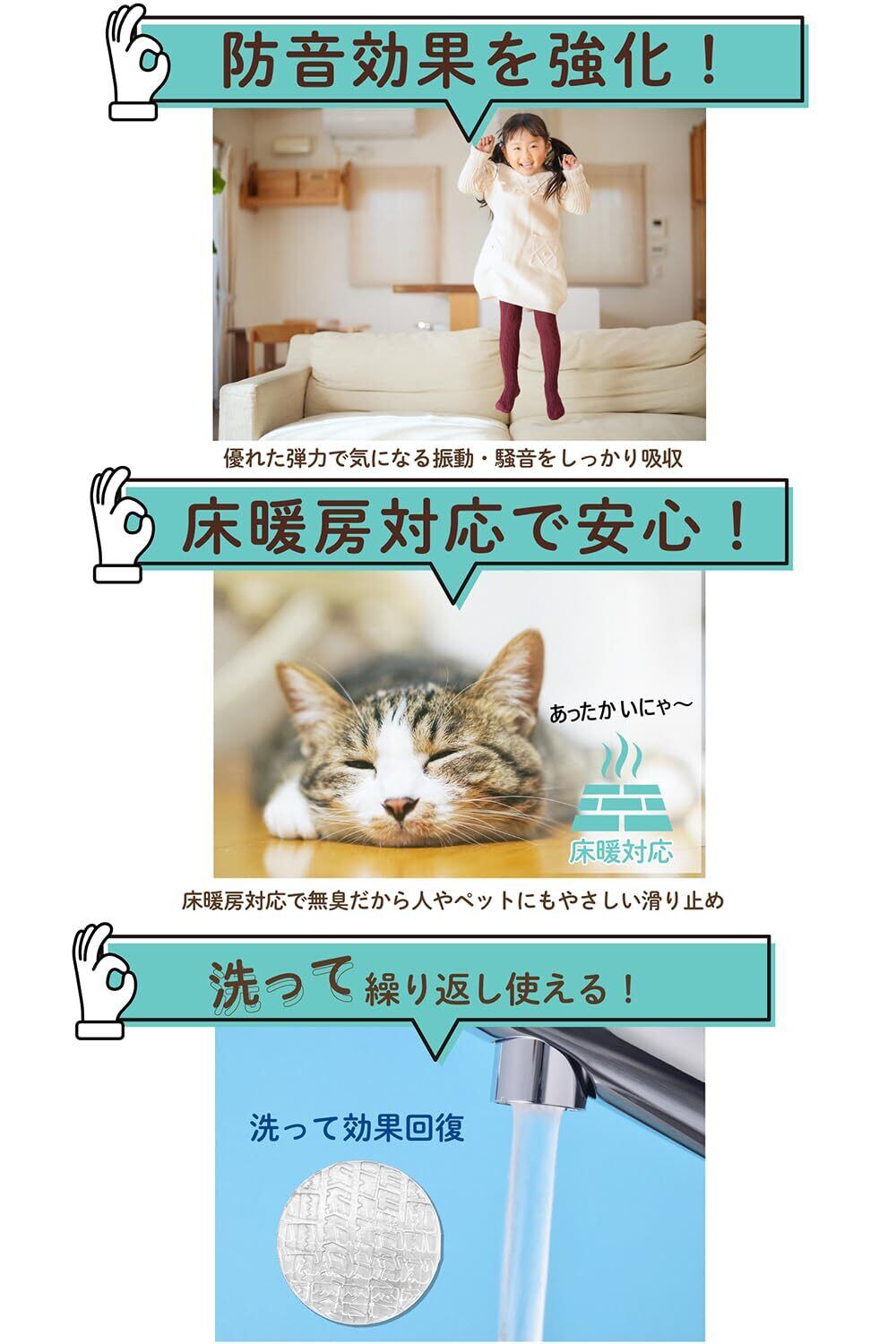【防音効果】優れた弾力で、気になる振動&騒音をしっかり吸収できる ソファ 滑り止め です。
