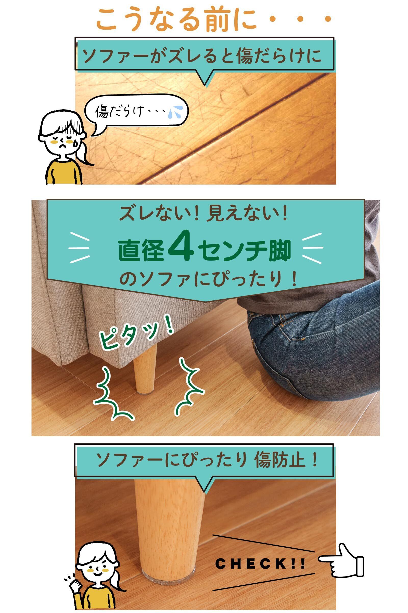 【透明クリアで目立ちにくい】どんな床色でも違和感なくお使いいただける ソファ 滑り止め です。