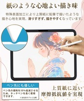 【紙のような描き心地】特殊表面加工により上質紙に鉛筆で描いたような描き心地を実現。 iPadで手書き作業をする人(ノート作成やイラスト)におすすめのペーパーライクフィルムです。️安い商品より圧倒的に書きやすい! さらさらした手触りで、書き味にこだわりたい方に最適です。また、表面を保護し、傷や汚れも防ぐ液晶保護フィルム(画面保護シート)です。
