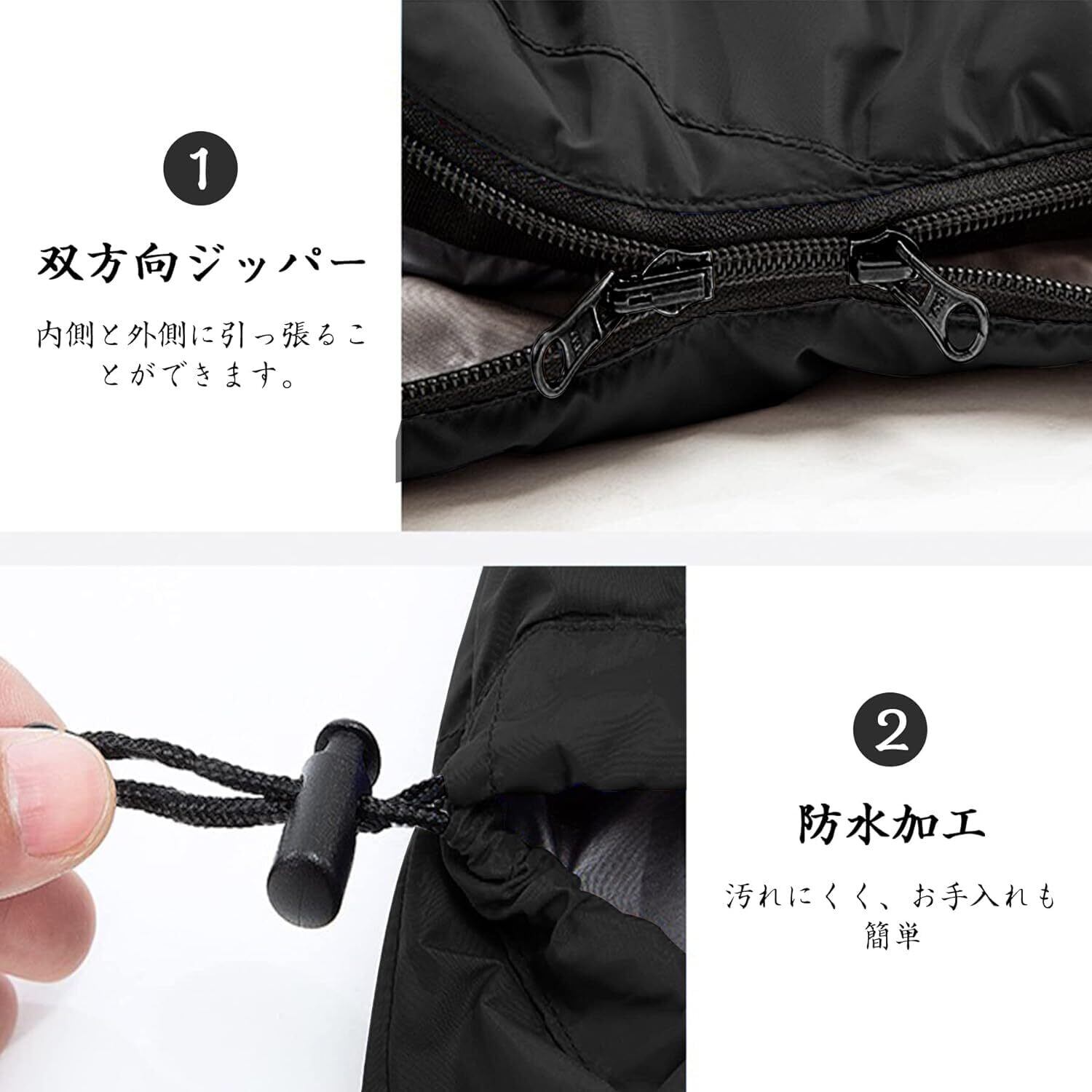 【実用のデザイン】帽子には手縄が伸縮できるので、頭部まで覆われて、襟元も閉めて、寒気を防いでちゃんと保温してくれます。右侧ダブルジッパーは内外側どちらからでも、足元から肩まで開閉でき、温度調節でも簡単、封筒型なので、厚着で就寝しても圧迫感なし。寝袋のポケットには、時計などの小物を収納できます。
