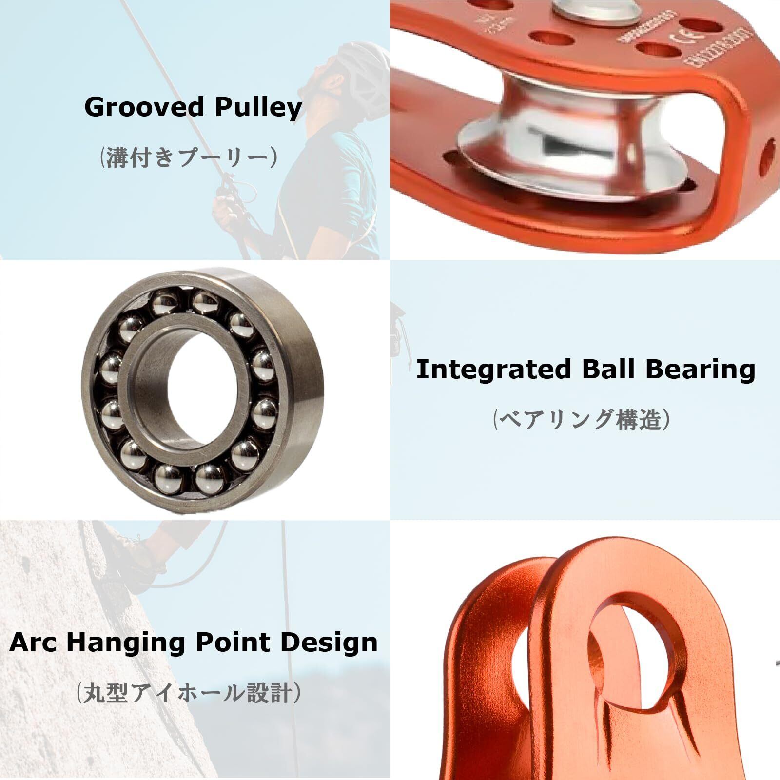 YAPJEB マイクロプーリー 26kN シングルプーリー クライミング プーリー 固定型 ローププーリー 滑車 アーボリスト 登山 レスキュー 運搬 リギング(オレンジ)