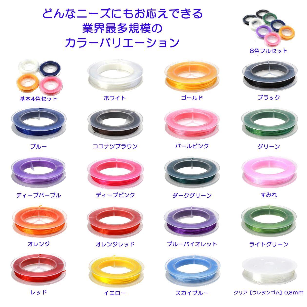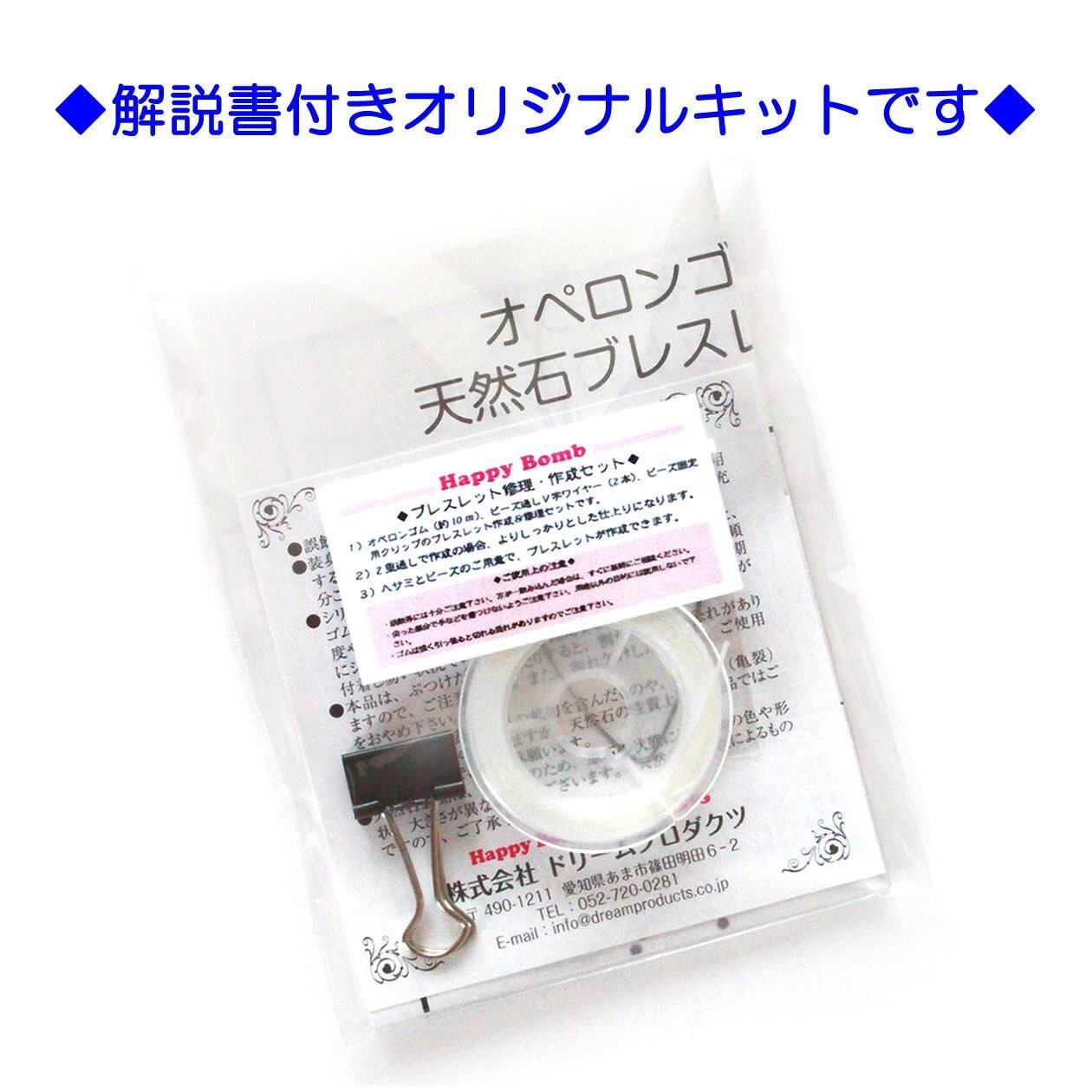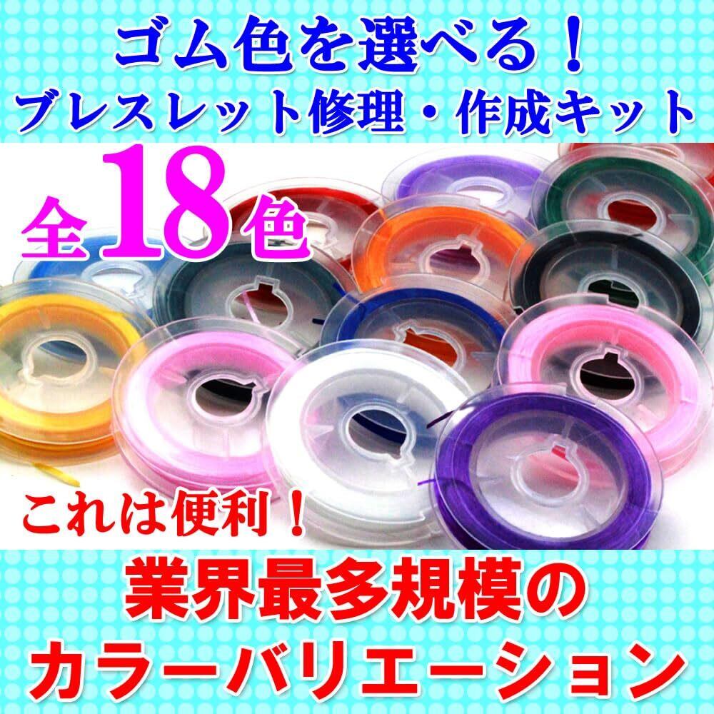 【カラーバリエーションは20色以上。石の色を更に引き立てます】◆ビーズの色と同色系のゴムを使用することで、透明感のある素材は色合いが見違えるように鮮やかになります。 オペロンゴム1巻、10mを2重使いで約15~18本程度のブレスレットが作成できます。 1巻当りで作成できる本数は使い方により変わります。 初めて作成や修理をされる方も解説書付ですので安心です。