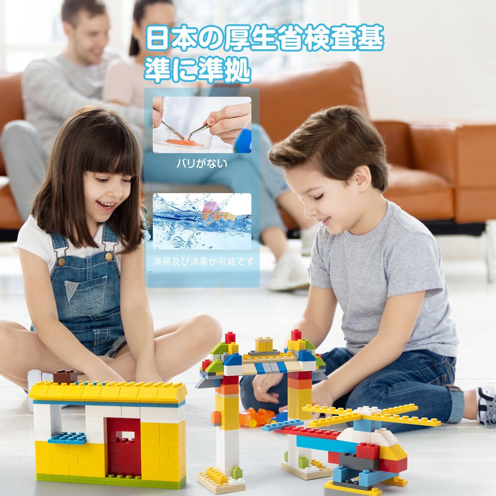 【安心の高品質素材】当社のブロックは、環境に優しいABS素材を採用。日本国の幼児向け玩具安全基準(落下、圧縮、ねじり、加熱、曲げ、キズ、引張の各種試験)をクリアしていることを確認しています。厳密な品質検査を実施し、変形しにくい高耐久性で長く安心してご使用いただけます。お子様が毎日触れるものだからこそ、安全にこだわりました。