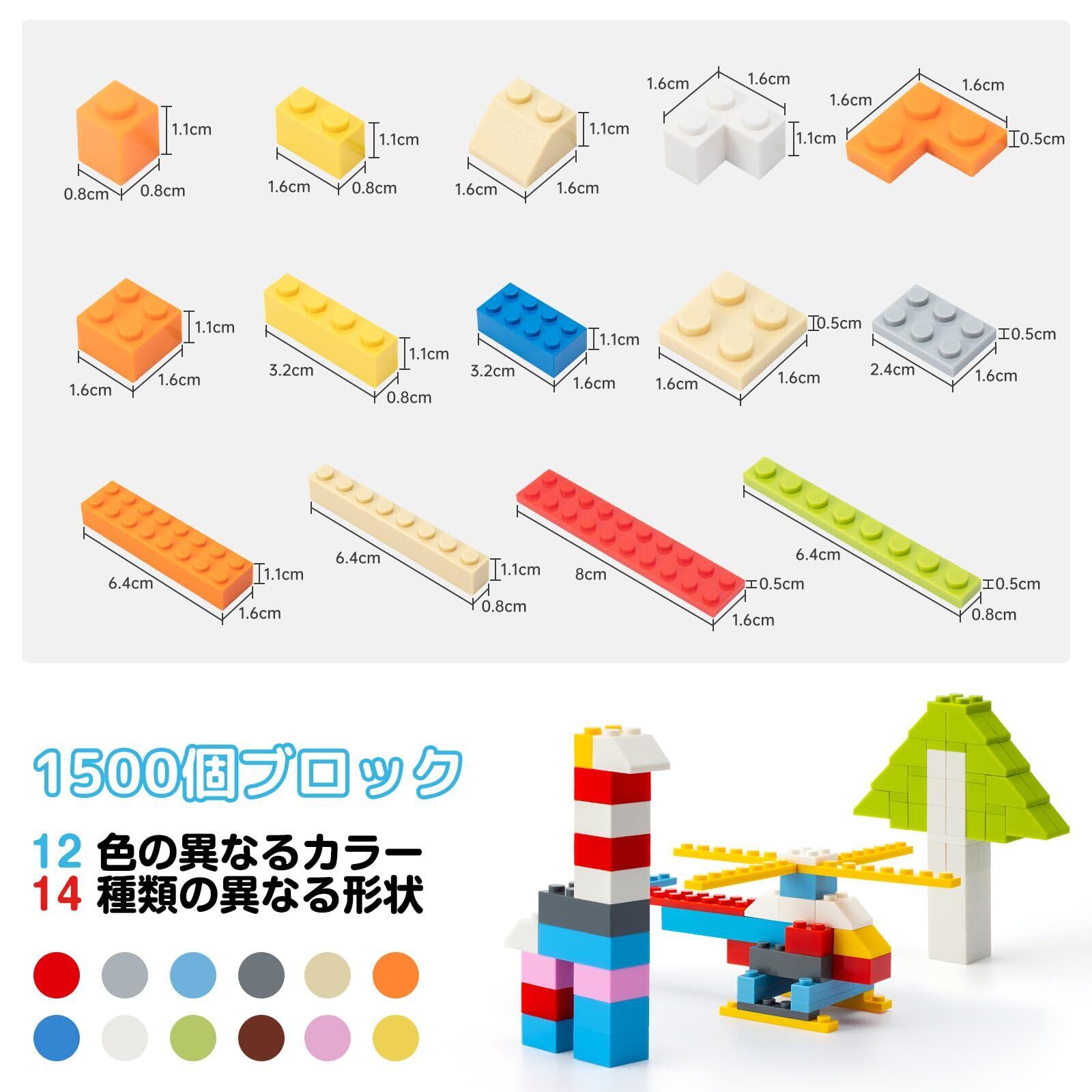 HIUME 1500ピース クラシック ブロック おもちゃ 基本ブロック拡張セット- お手持ちブロックの買い足しに最適!高コスパで12色14形状の基礎パーツ、男女兼用、6歳以上対象