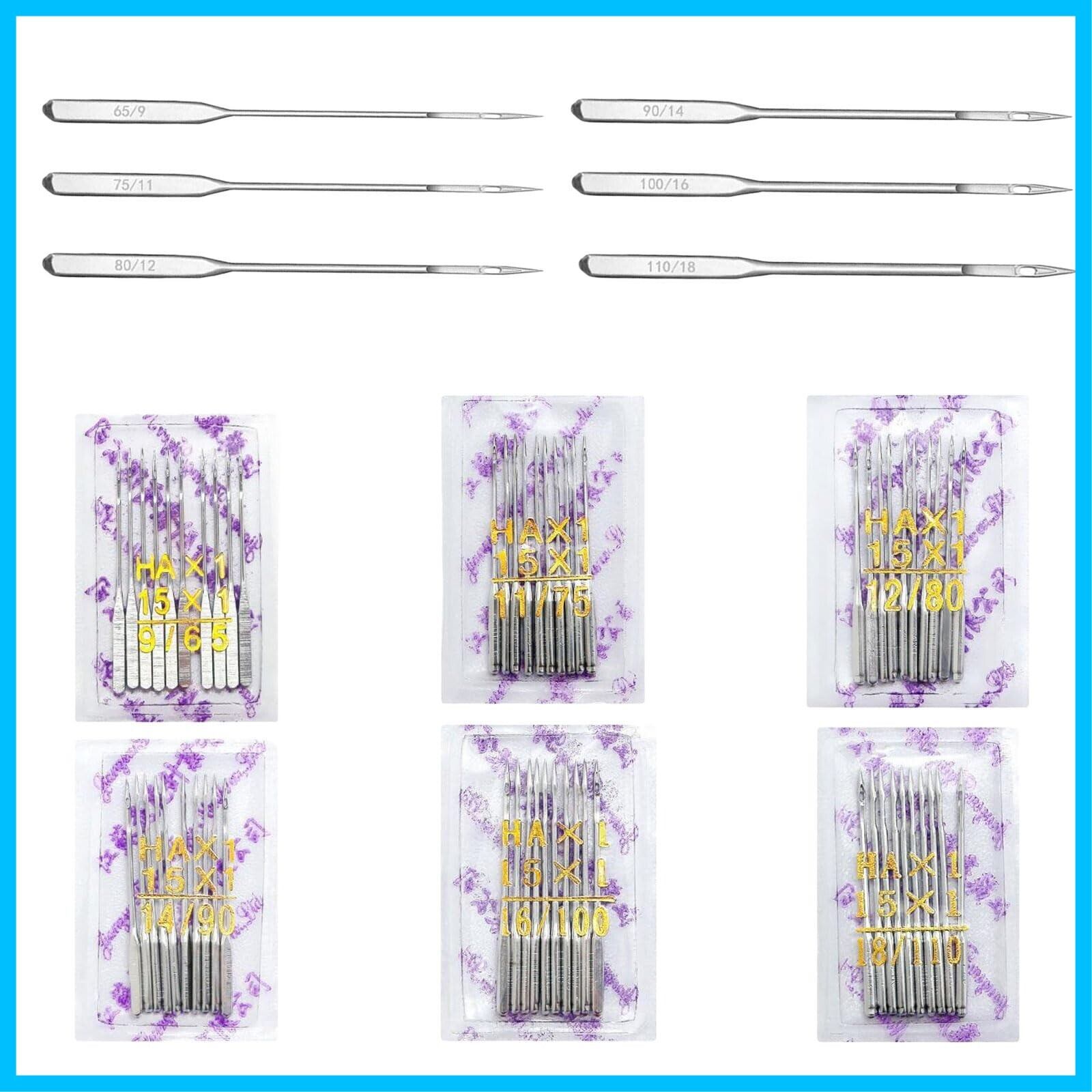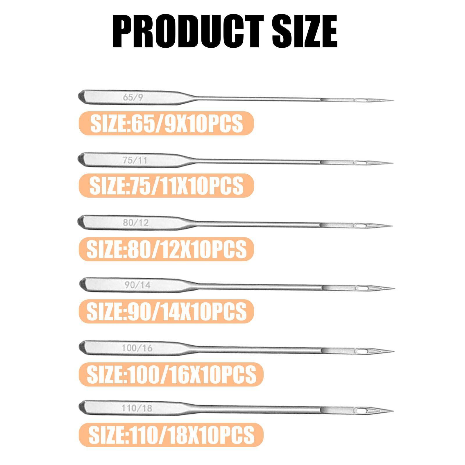 【パッケージ内容】ミシン針 60本入り。6種類サイズのミシン針:9#*10本、11#*10本、12#*10本、14#*10本、16#*10本、18#*10本。さまざまなニーズにお応えします。
