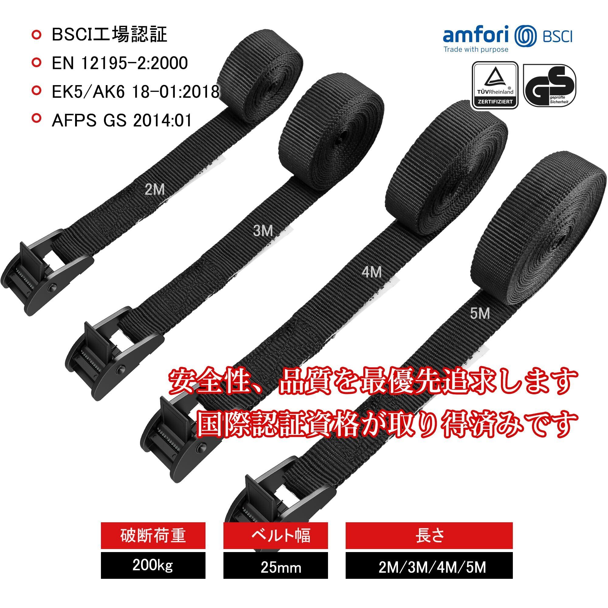 AWELCRAFT 荷締めベルト 3Mx4本 破断200KG GS認証取得済み ラッシングベルト 荷締バンド 多用途 固定ベルト タイダウンベルト 結束バンド 梱包 ベルト 荷物 固定バンド 荷締機 自動車ベルト バイクベルト Lashing Strap 地震対策グッズ