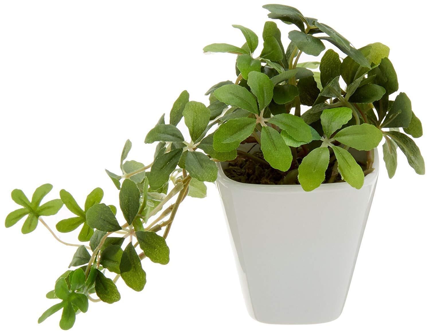 ケーアイジャパン インテリアグリーン 造花 観葉植物 光触媒 フェイクグリーン KU シュガーバイン (全長 14cm 白 陶器 スクエア ポット)