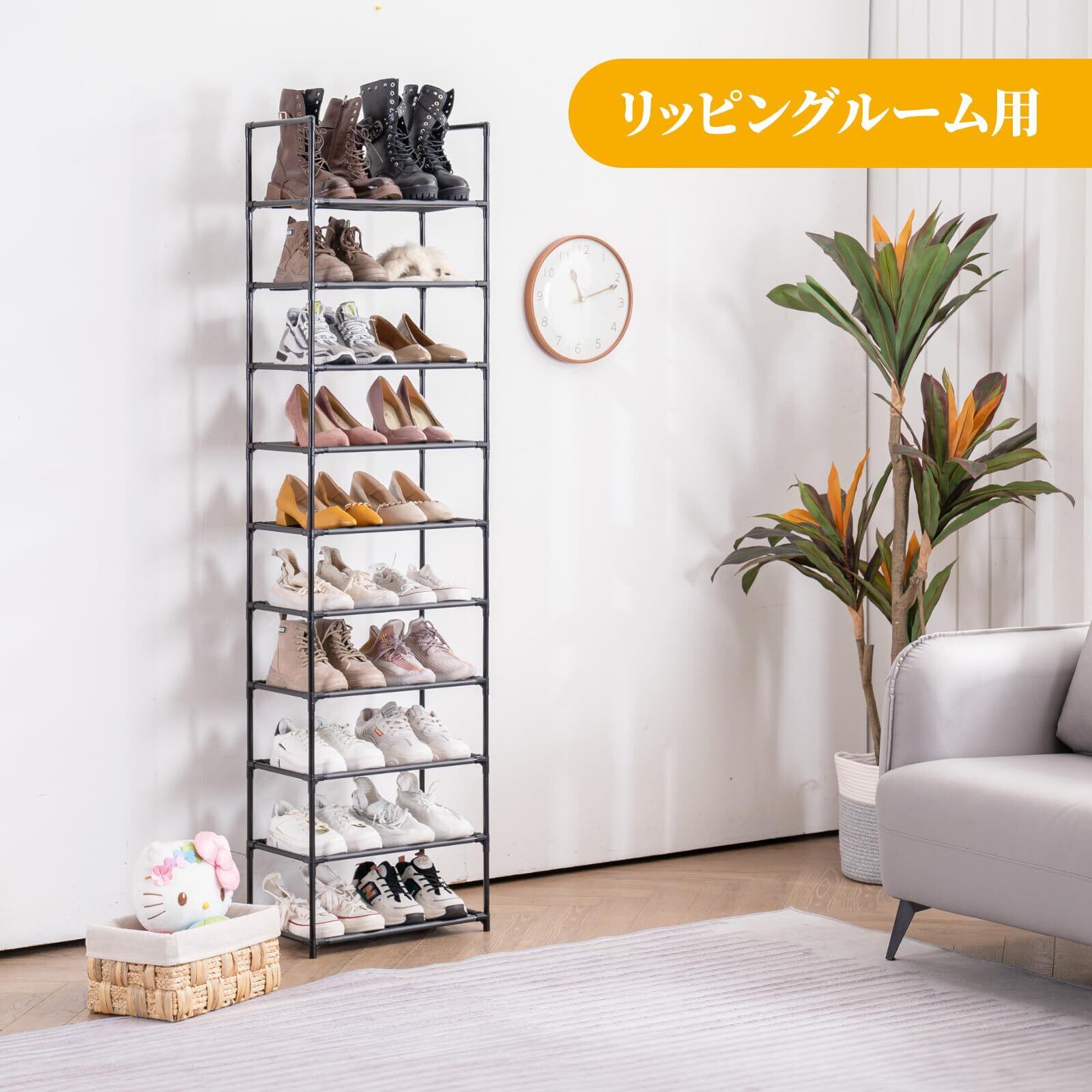 【多用途に使えるシューズラック】シューズラックとしての使用はもちろん、本や雑誌、子供の玩具、衣類などを整理する収納ラックとしても活躍。玄関、寝室、キッチン、バスルームなど様々な場所で使用でき、部屋をすっきりと整えます。