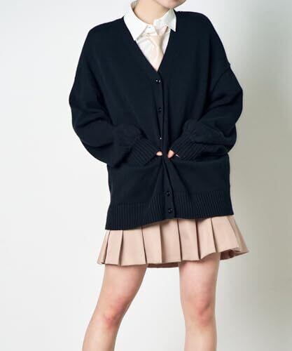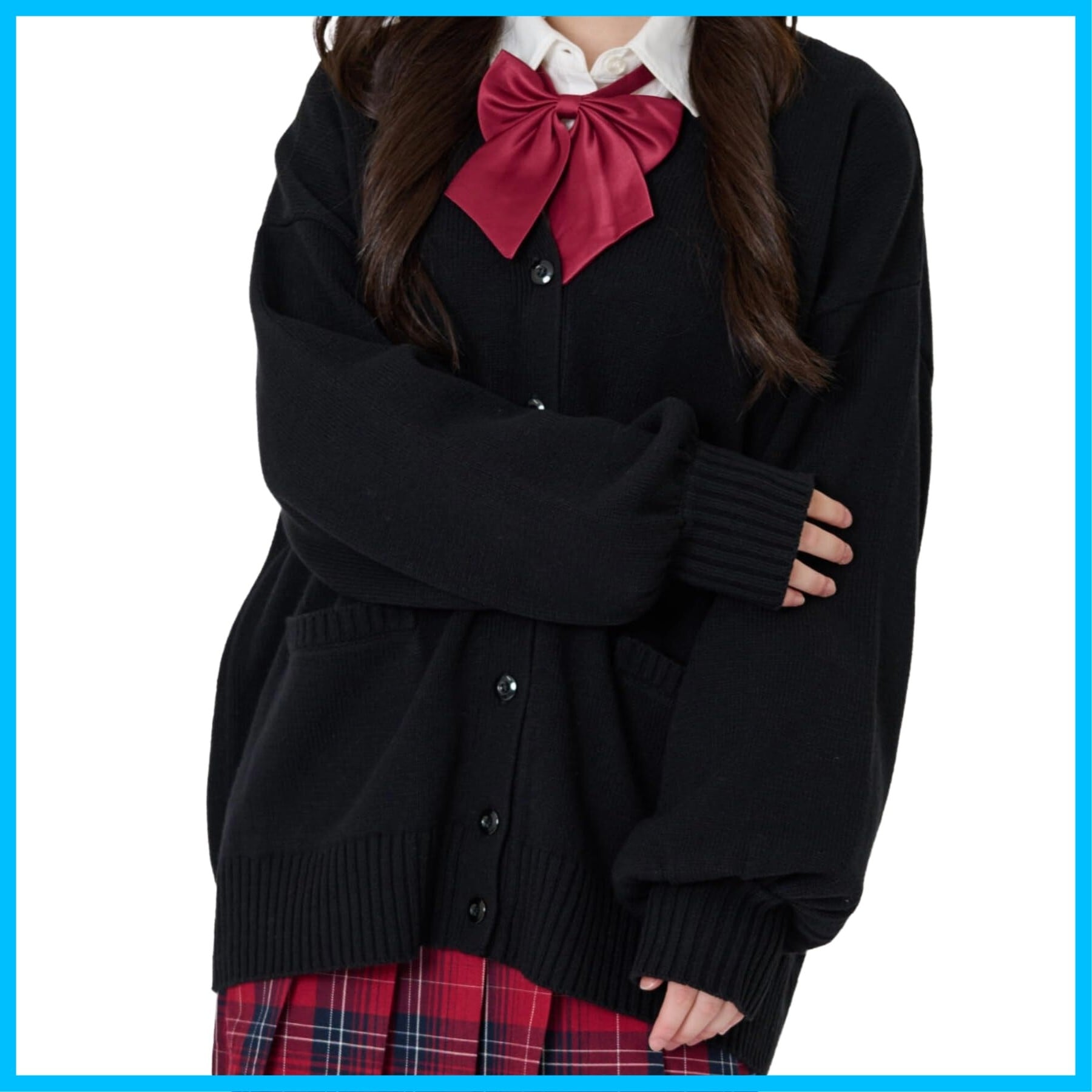 だぼ袖 ゆったり スクールカーディガン カーディガン レディース ニット トップス 学生 服 制服 アウター 無地 羽織 女子 通学 高校生 中学生 秋服 ギフト レディース F ブラック
