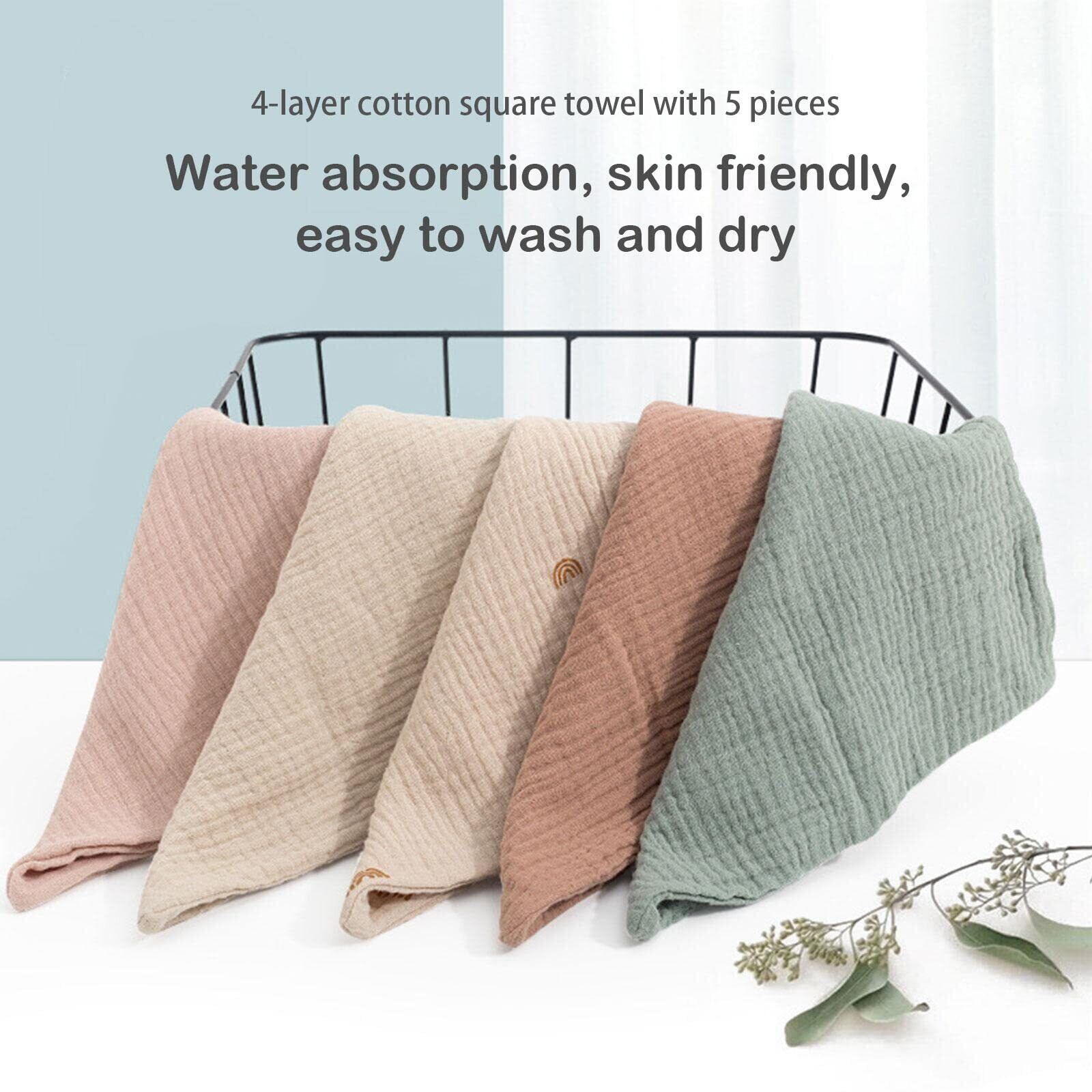 wanshu ガーゼハンカチ ガーゼタオル 赤ちゃん 綿 4重ガーゼ 薄手 速乾 23*23㎝ 5枚セット 新生児 出産祝い 男女兼用
