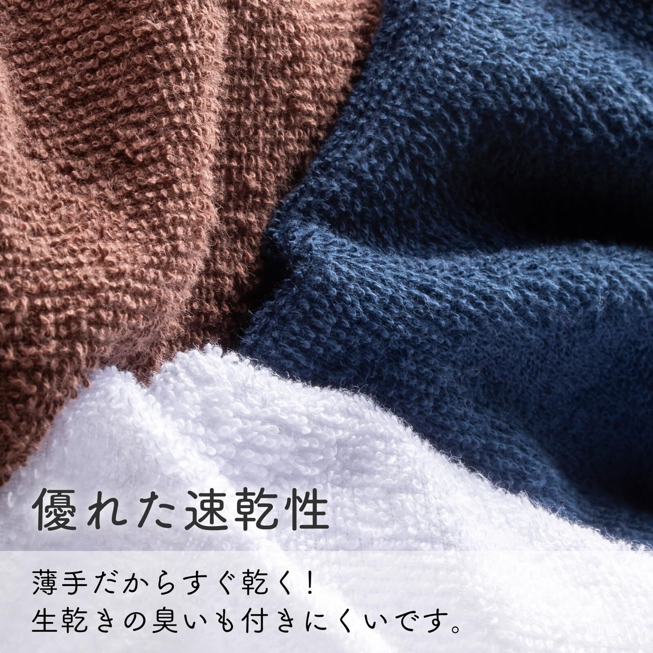 【商品説明】薄手だからこそ部屋干しでも乾きやすく、衛生面も安心。耐久性・吸水性に優れているので毎日の洗顔後や、お風呂上りのタオルドライ、運動後の汗拭き用と様々な用途で使えます。さらにコンパクトに折り畳むことが可能なので、収納スペースにも困りません。サロンなどの業務用はもちろんのこと、家庭用としても使える万能なフェイスタオルです。