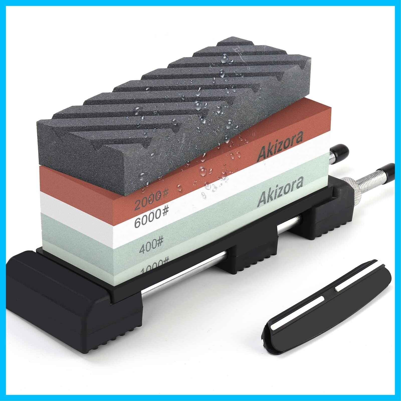 Akizora 砥石 包丁研ぎ石 400 1000 2000 6000 両面 万能砥石台付き 面直し 角度固定ホルダー付き 家庭用荒砥石 中砥石 包丁研ぎに最適