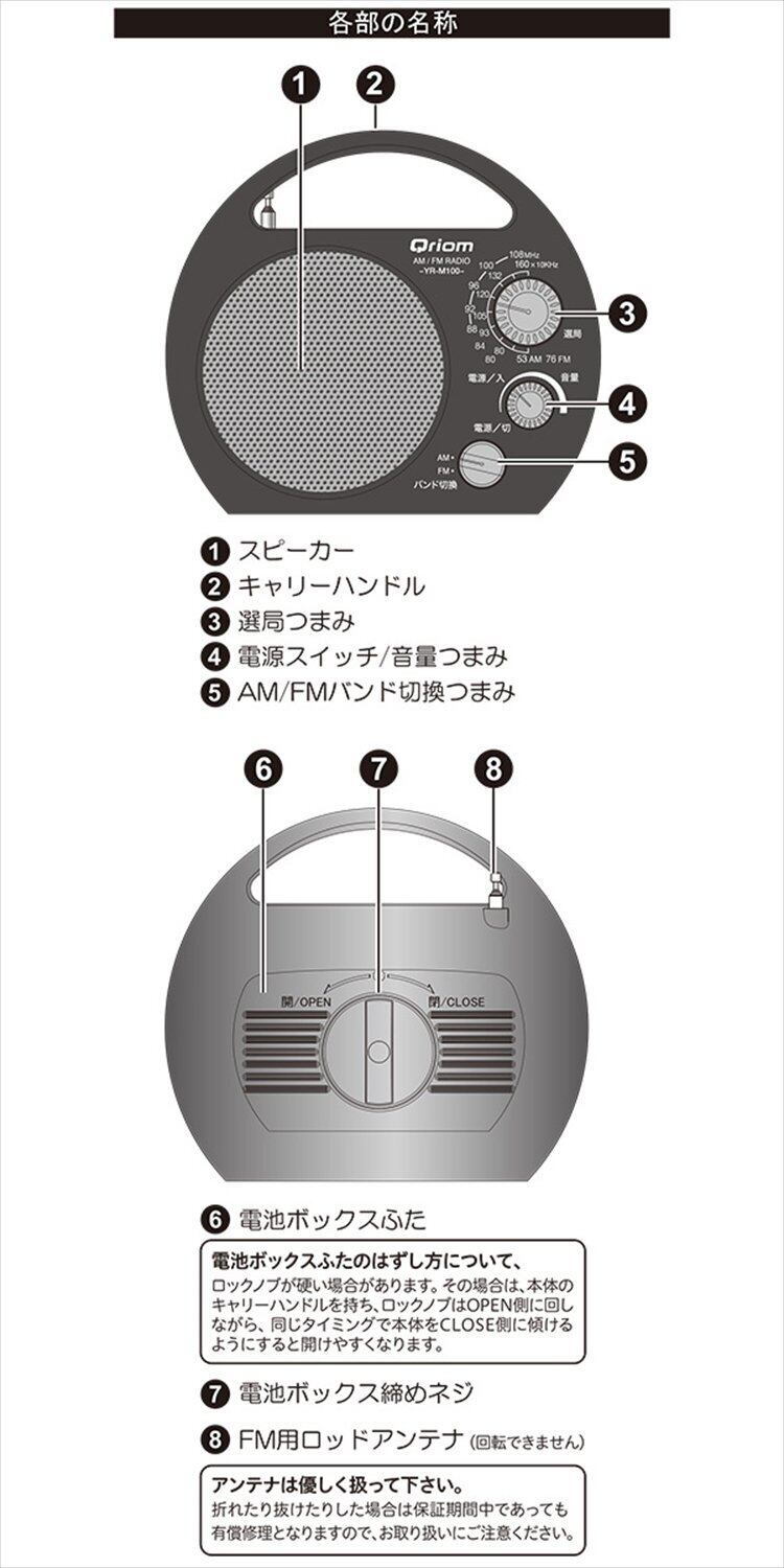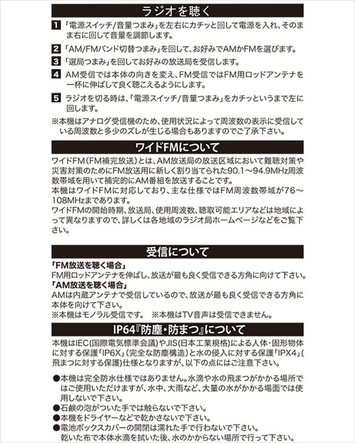 受信周波数:AM=530-1610KHz、FM=76-108MHz