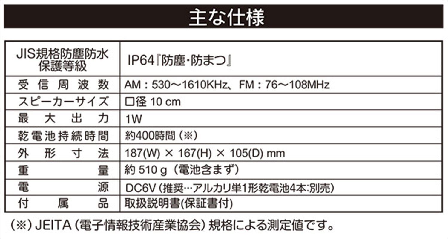 電源:DC6V (アルカリ単1形乾電池×4本:別売)