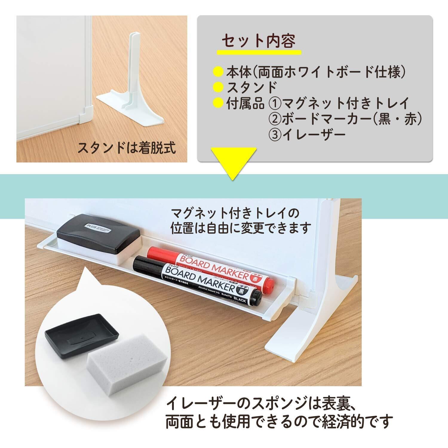 セット内容:本体(両面マグネットボード仕様)、スタンド、マグネット付トレイ、ボードマーカー(黒・赤)、イレーザー