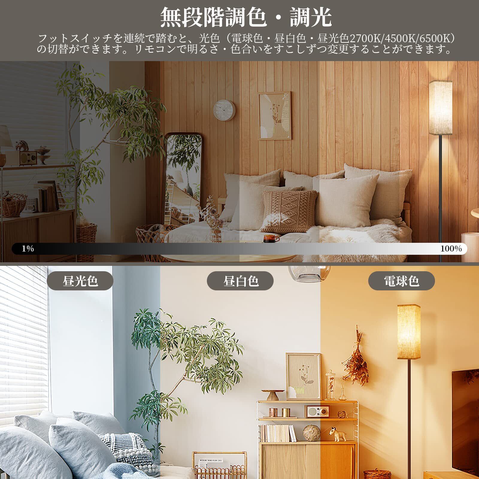 【3段階色温度調整・便利なフットスイッチ】フットスイッチを連続で踏むと、光色(電球色・昼白色・昼光色2700K/4500K/6500K)の切替ができます。座ったまま足を伸ばすだけで電源をOFFにでき、とても便利です。なお、電源コードの長さは約165CMで部屋のコーナーまたはソファ脇などのコンセントから離れた場所に使えます。