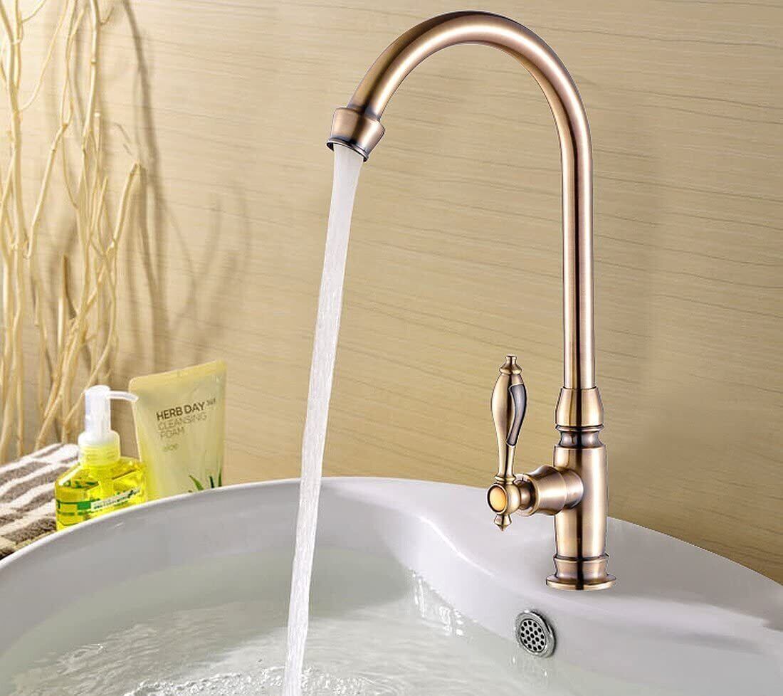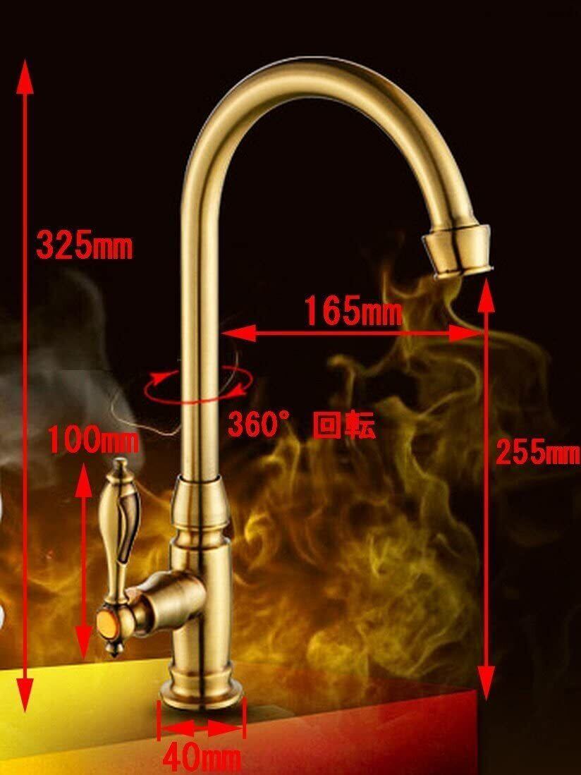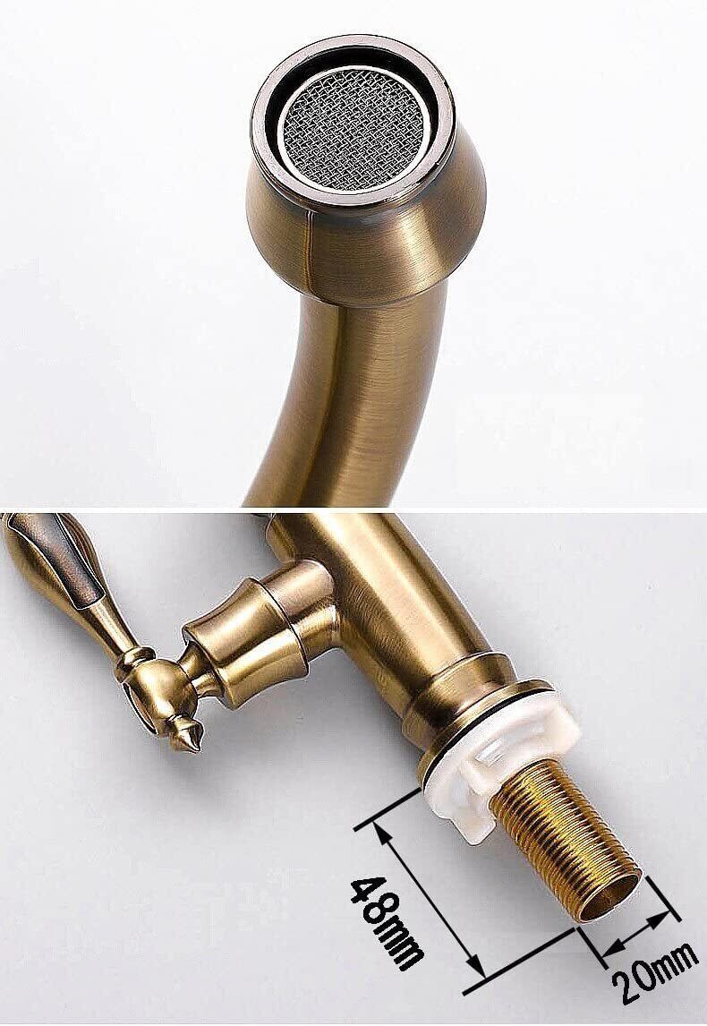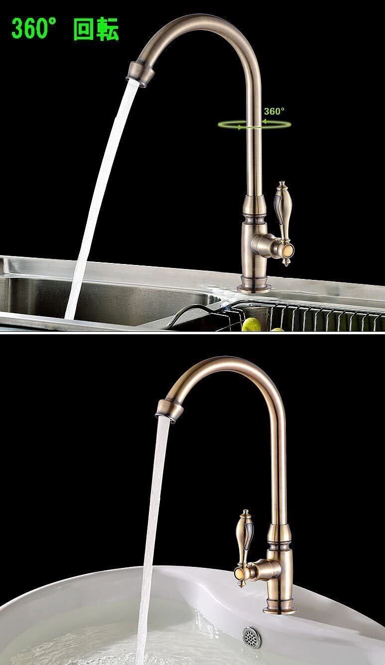 BaiDaiMoDeng 洗面用 アンティーク 単水栓 手洗いボウル 360°回転 ロング水栓 グースネック スワン 蛇口 レトロ シングルレバー 洗面台 ゴールド