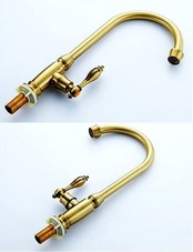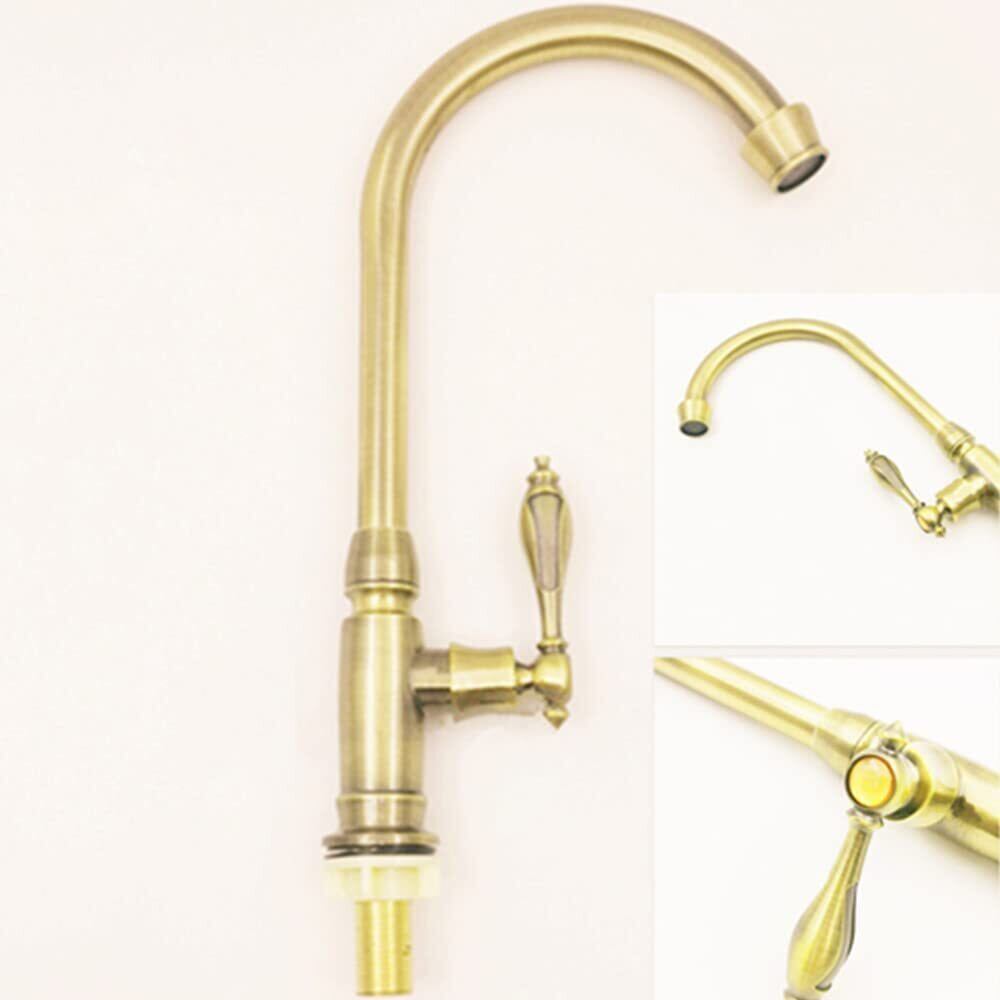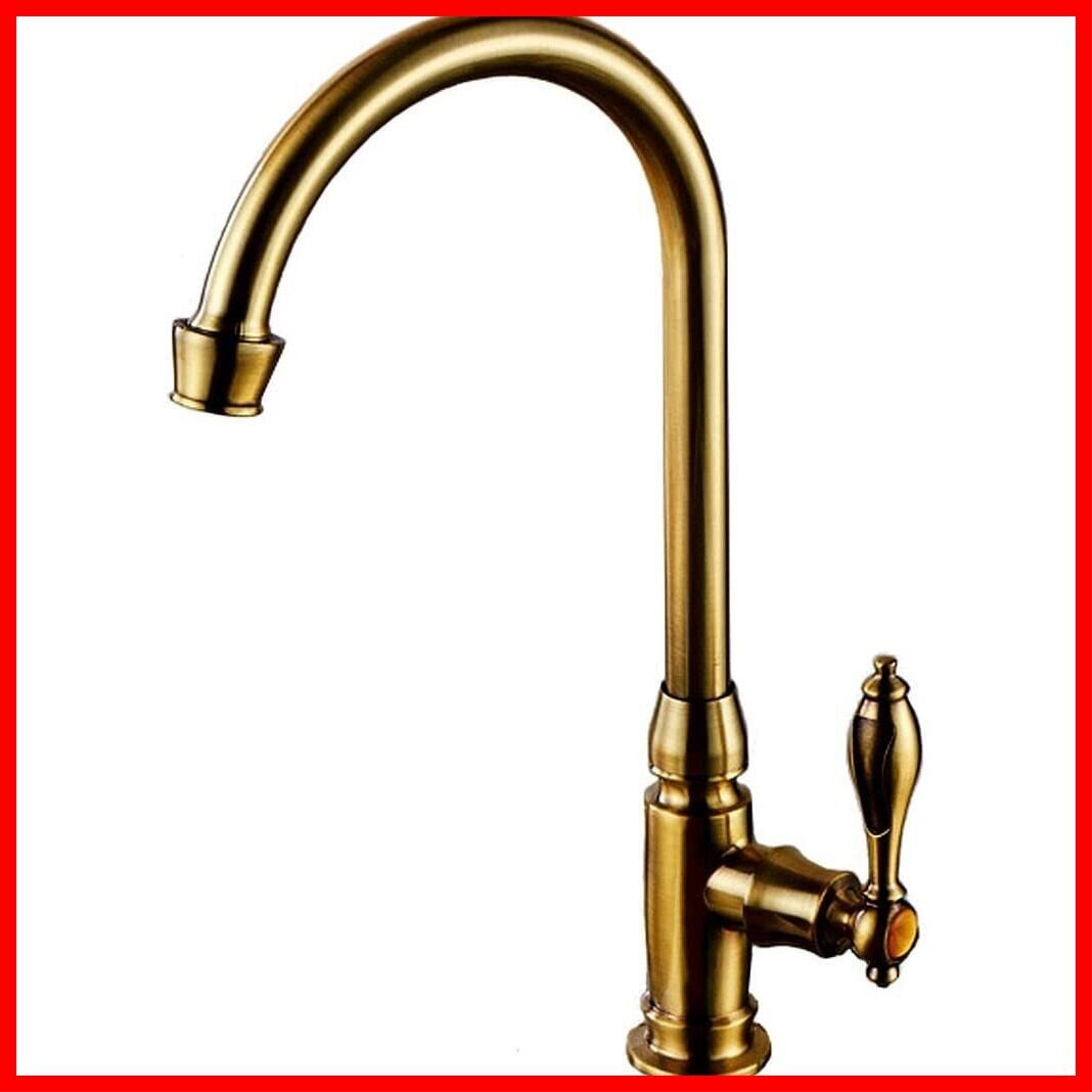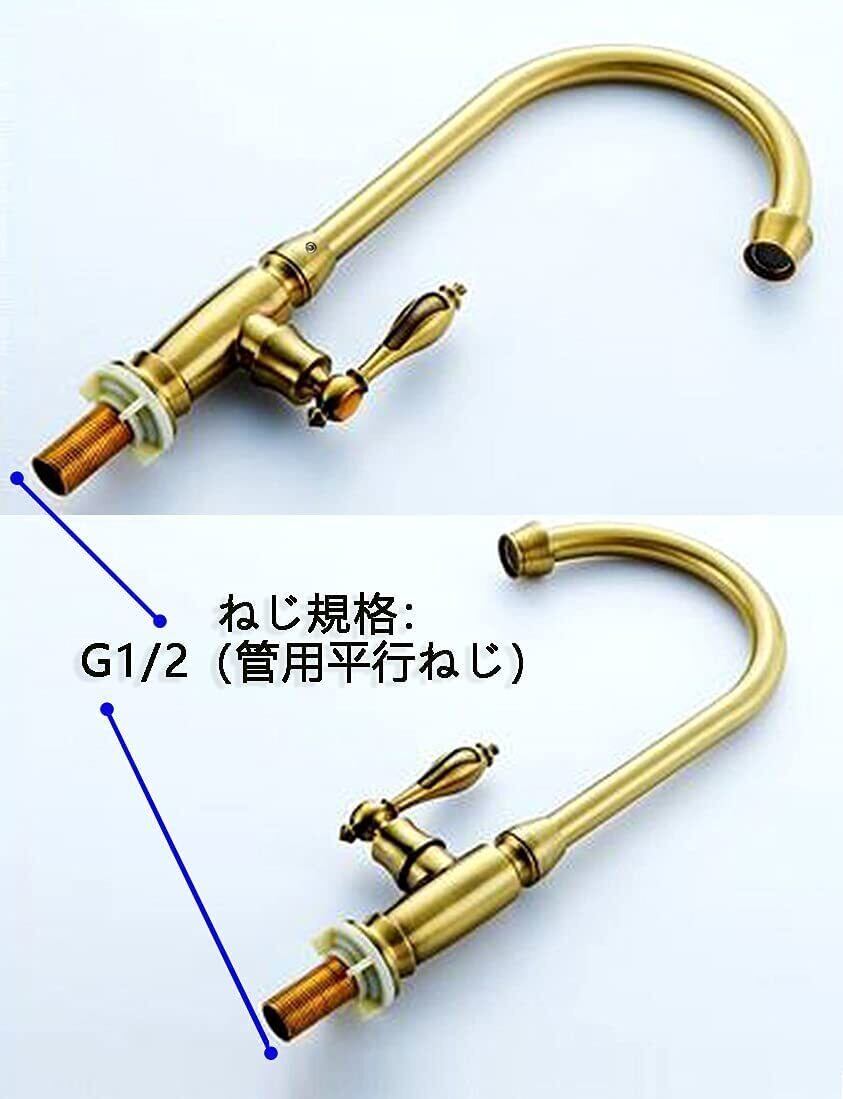 BaiDaiMoDeng 洗面用 アンティーク 単水栓 手洗いボウル 360°回転 ロング水栓 グースネック スワン 蛇口 レトロ シングルレバー 洗面台 ゴールド