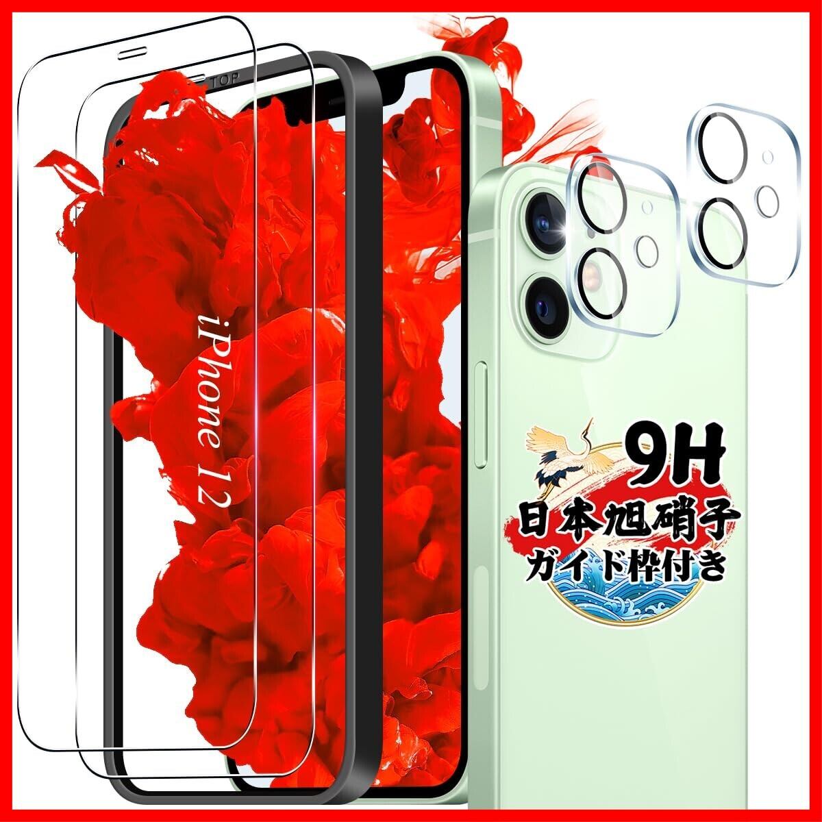 AQXNG 対応 iPhone12 ガラスフィルム 2枚 + iPhone 12 カメラフィルム2枚 対応 iPhone12 フィルム 強化ガラス 液晶 保護フィルム ケース 指紋認証対応 硬度9H 耐衝撃 飛散防止 3D Touch対応 高感度タッチ 指紋防止 撥油性 疎水性 自動吸着 気泡ゼロ 貼り付け簡単 対応 アイフォン12 ガラス保護フィルム