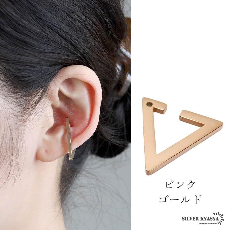 人気沸騰中 トライアングルイヤーカフ 三角イヤーカフ 耳飾り シンプル ゴールド 金 メンズイヤーカフ レディースイヤーカフ 片耳用(ピンクゴールド)