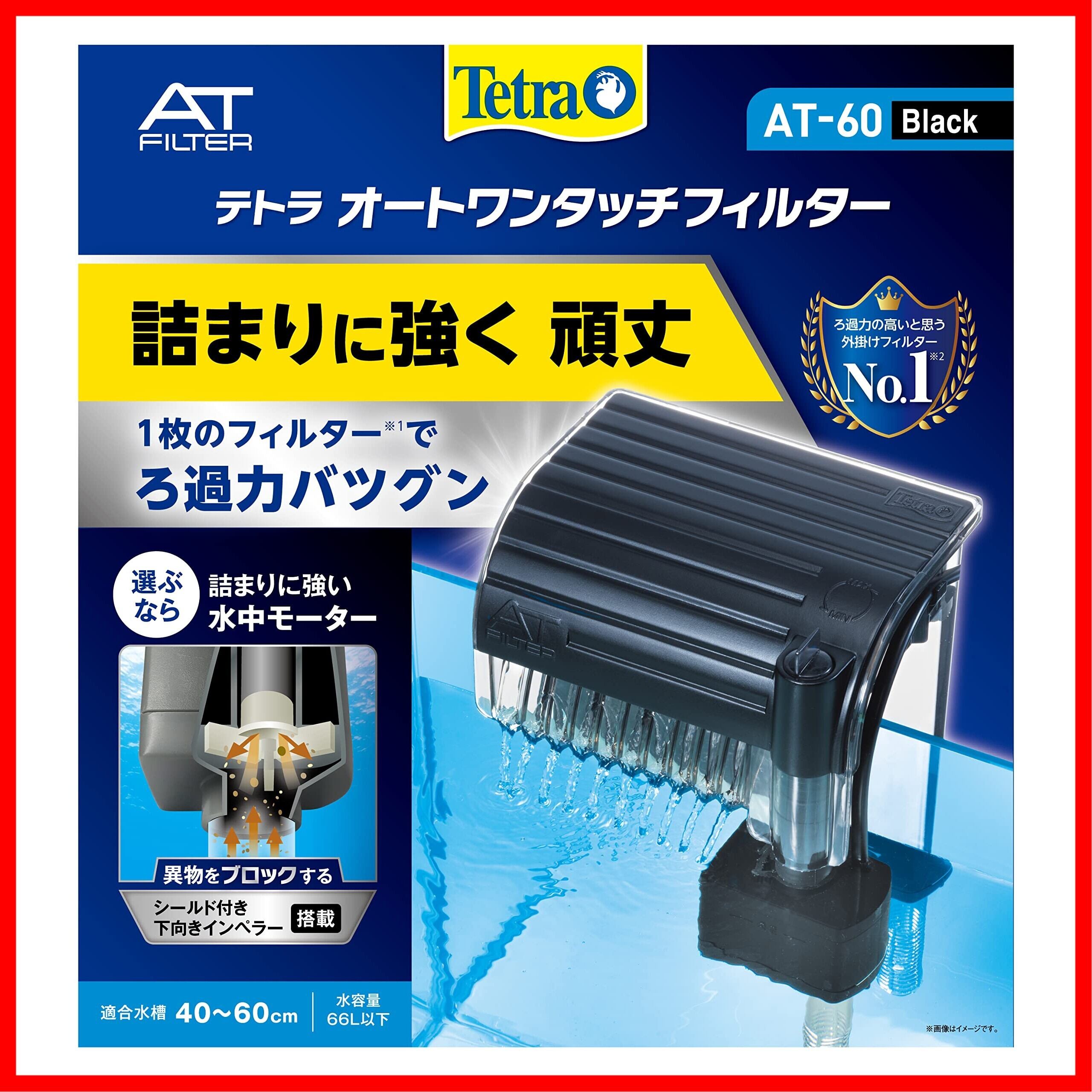 テトラ (Tetra) オートワンタッチフィルター AT-60 外掛け式フィルター 静音 異物をブロックするシールド搭載 ろ過力バツグン 詰まりに強く頑丈 ラクラクお手入れ