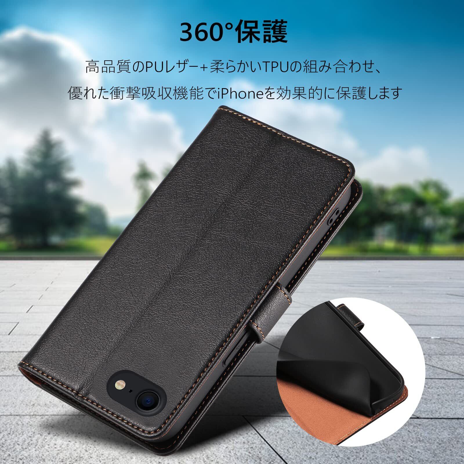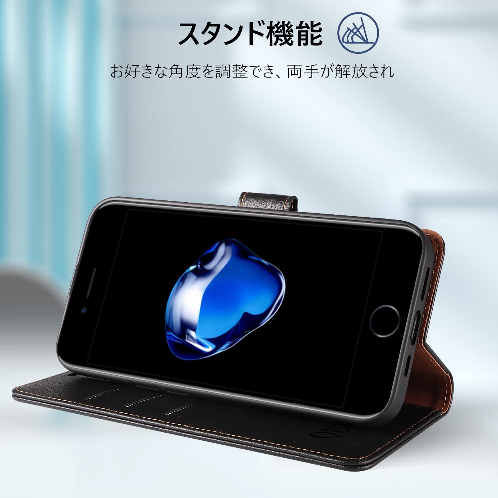 QUEASON 互換品 スマホケースマグネット式 PUレザー iphone se 用 ケース 手帳型 耐衝撃 iphone8 用 ケース 手帳型 カード収納 スタンド機能 iphone se3 用 ケース 手帳型 携帯カバー iphone se2 用 ケース 手帳型 落下防止 全面保護(ブラック)