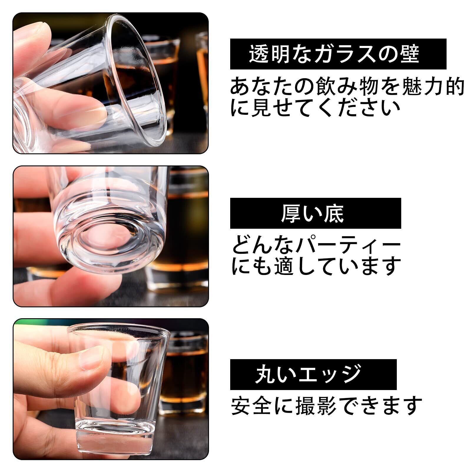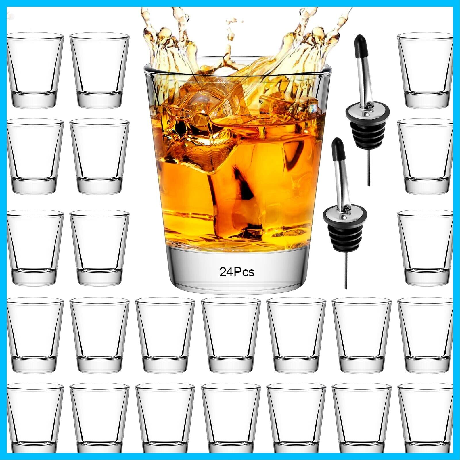 ショットグラス24個- 50 ml ショット グラス クリアグラス、ミニグラス、ヘビーベース ウイスキー、テキーラ、ウォッカ、リキュール、エスプレッソ