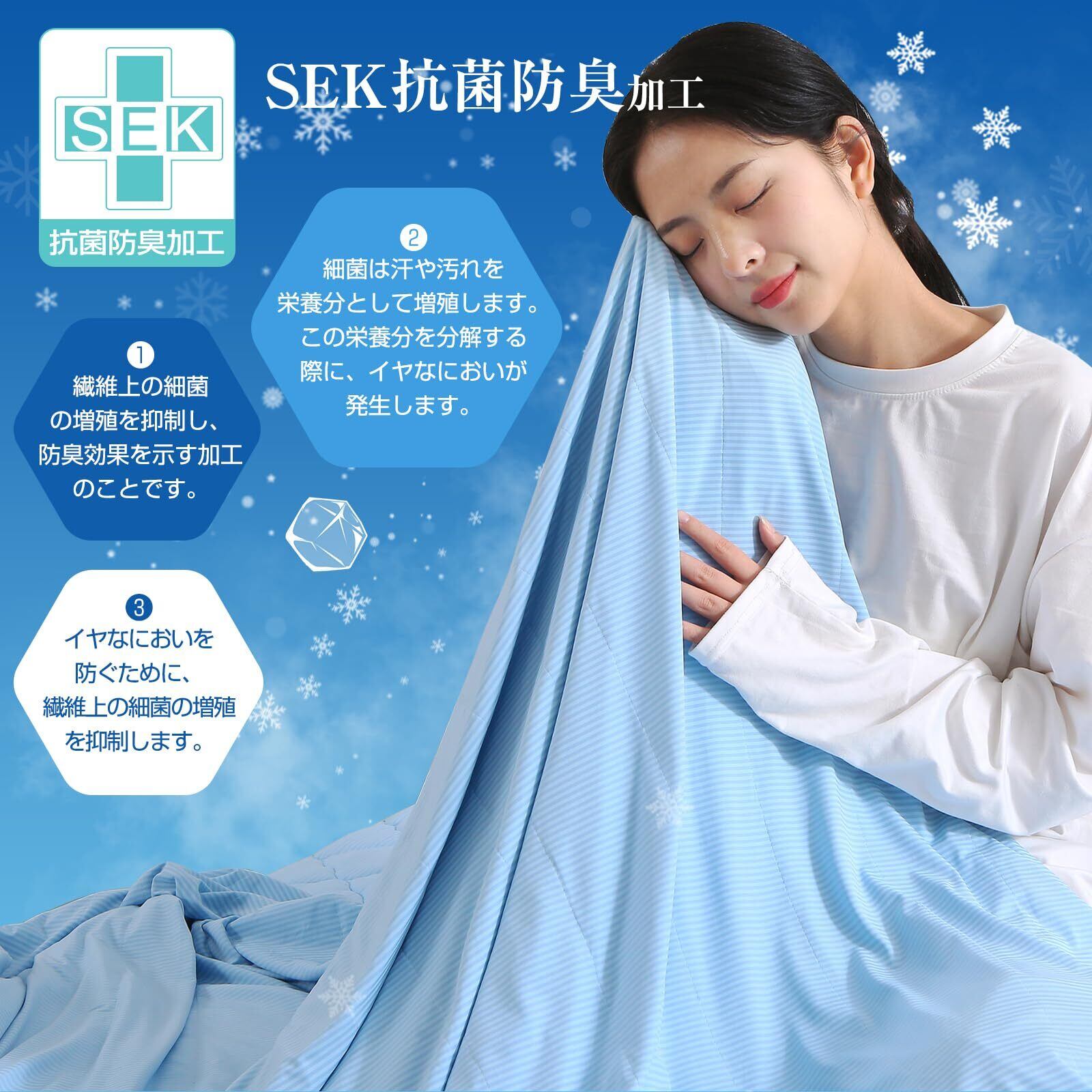 【Q-MAX接触冷感値0.45を実現】肌に触れるとひんやり冷たい素材のクールケットです。ひんやり感の高い接触冷感素材を使用。さらりとした肌ざわりと清涼感で快適な寝心地です。暑い日や寝苦しい日もひんやりとした感触をお楽しみいただけます。冷房と併用することで、さらにその効果を高めることができるのでオススメです。
